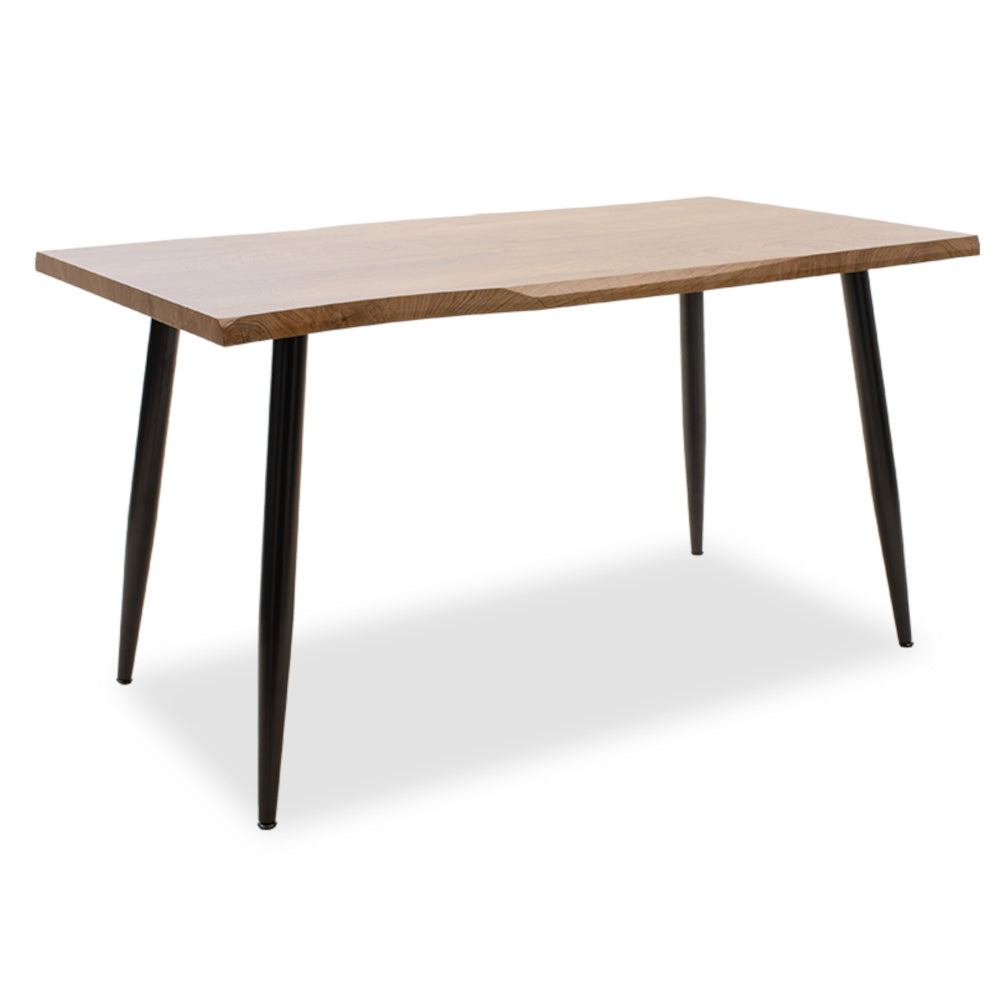 Jedálenský stôl JansJedálenský stôl Jans je moderný kus nábytku, ktorý vás zaujme svojím originálnym vyhotovením. Vďaka spojeniu dosky v orechovom dekore a čiernych nôh stôl zapadne do väčšiny interiérov. Doska stola je vyrobená z drevovláknitých dosiek MDF, zatiaľ čo nohy sú z kovu. Spojenie týchto materiálov zaručuje stabilitu a dlhú životnosť jedálenského stola.