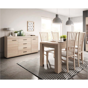 Použité materiályStôl je vyrobený z lamina, ktoré je odolné voči poškriabaniu, oderu či chemikáliám. Jeho údržba je veľmi jednoduchá, stačí použiť handričku a bežný saponát. Svetlé vyhotovenie v dekore duba sonoma pôsobí veľmi výnimočne a svojou farebnosťou sa stane elegantným a hlavne praktickým prvkom vašej jedálne. Najvyšší jedálenský stôl vynikne s ostatnými prvkami programu Link. Stoličky k stolu nie sú súčasťou ponúkaného tovaru. |