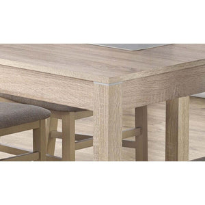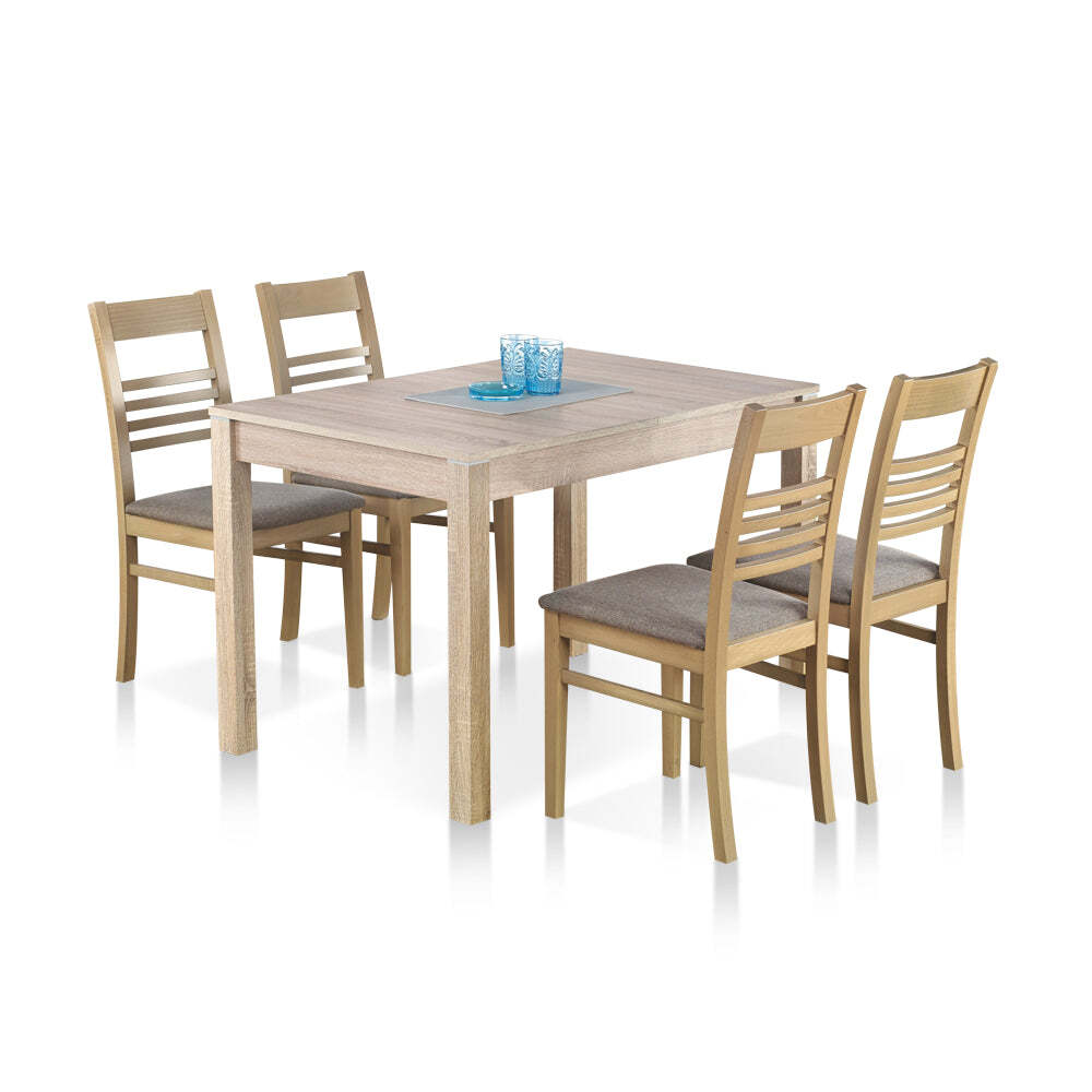 Jedálenský stôl MirelJedálenský stôl Mirel vás osloví svojím vkusným dizajnom v prírodnom dekore, ktorý vo vašom interiéri krásne vynikne. Jeho stabilita je zaistená pevnými nohami stola. Stôl je navyše rozkladací. Svojimi čistými líniami vám necháva dostatok priestoru na výber vhodných stoličiek, ktoré nie sú súčasťou tejto ponuky. Doprajte si stôl, ktorý nikdy nevyjde z módy a bude vás tešiť každý deň! Stôl sa dodáva bez vyobrazených stoličiek. |