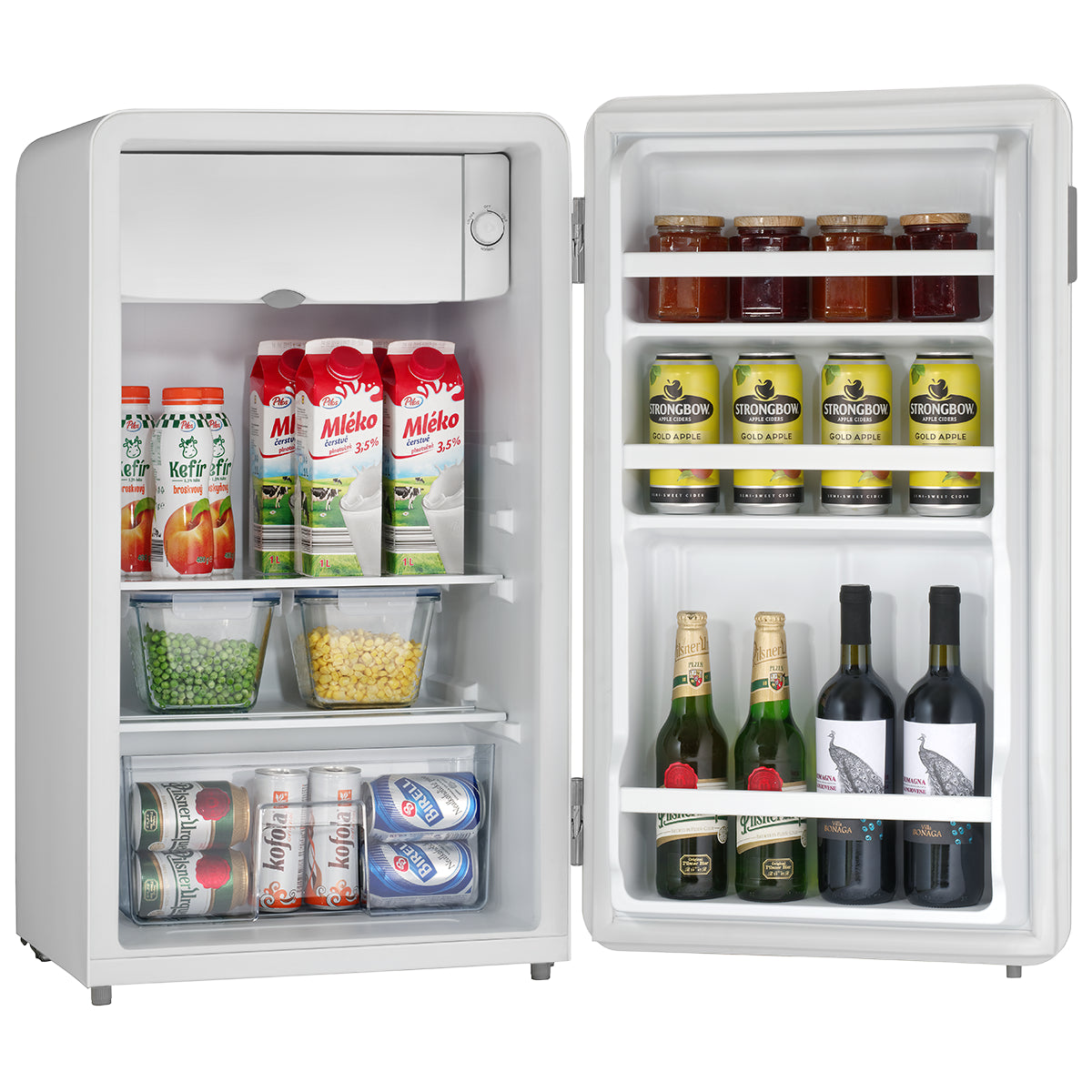 Kompaktné rozmeryVďaka svojim kompaktným rozmerom je chladnička ideálna pre malé kuchyne, kancelárie, študentské internáty alebo chalupy. Ide o jednodverový model s celkovou kapacitou 93 litrov. |