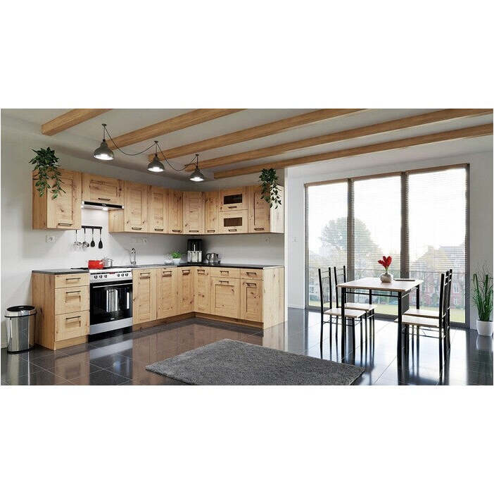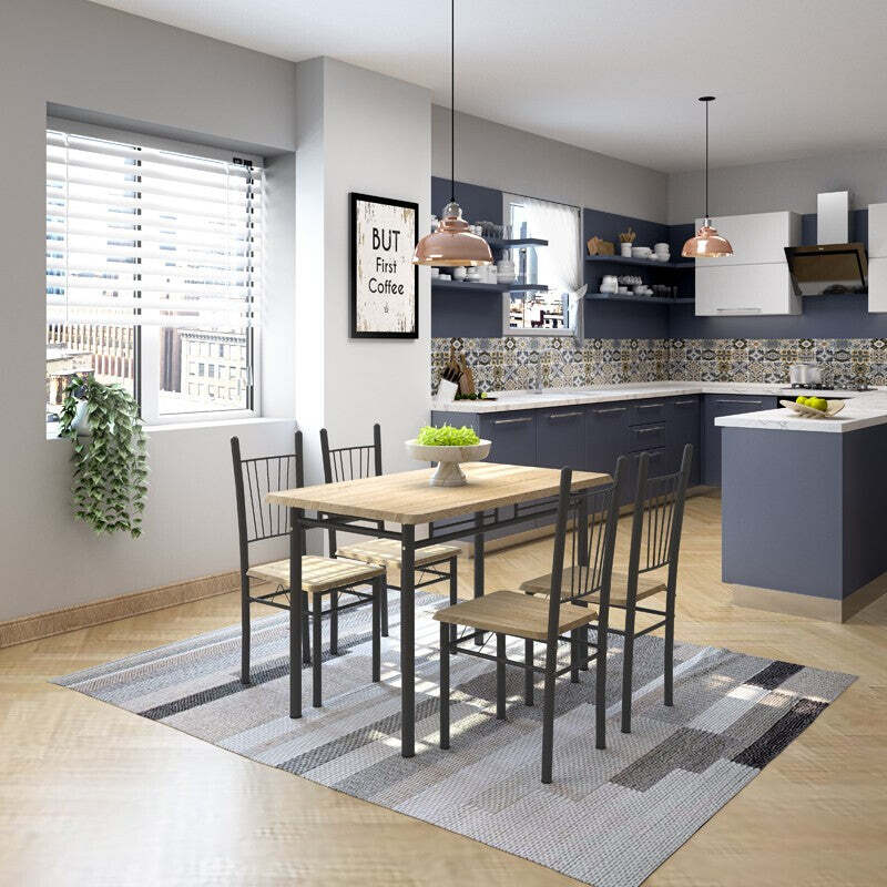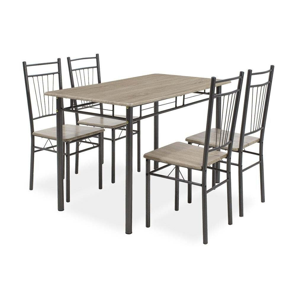 Jedálenský set dub sonoma RaulJedálenský set Raul vám poskytne pohodlné miesto ako na rodinné stretnutia, tak aj pre spoločné chvíle s priateľmi napríklad pri dobrej káve či víne. Súčasťou setu je jedálenský stôl a štyri stoličky s vysokými operadlami. Vyhotovenie v dekore dub sonoma v kombinácii so sivým odtieňom pôsobí veľmi vkusne a vykúzli tú pravú idylickú atmosféru. Stane sa tak nenahraditeľnou súčasťou vášho interiéru a súčasne i neobyčajným doplnkom.