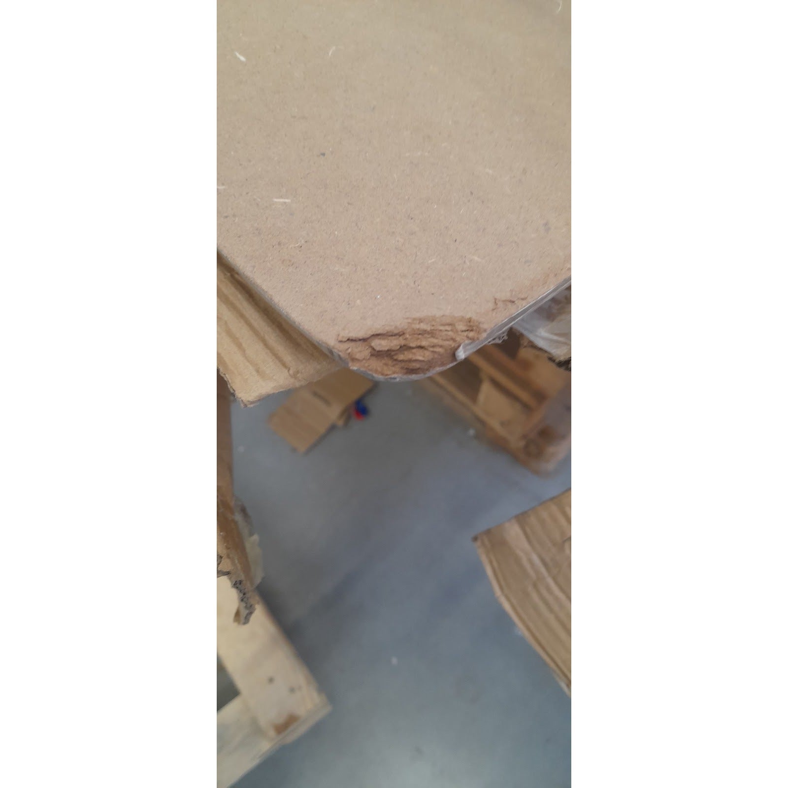 Dôvody zaradenia do bazárového tovaru - Poškodené rohy dosiek na sedacej časti stoličky, narazený roh stola. Fotografie poškodenia nájdete v galérii.