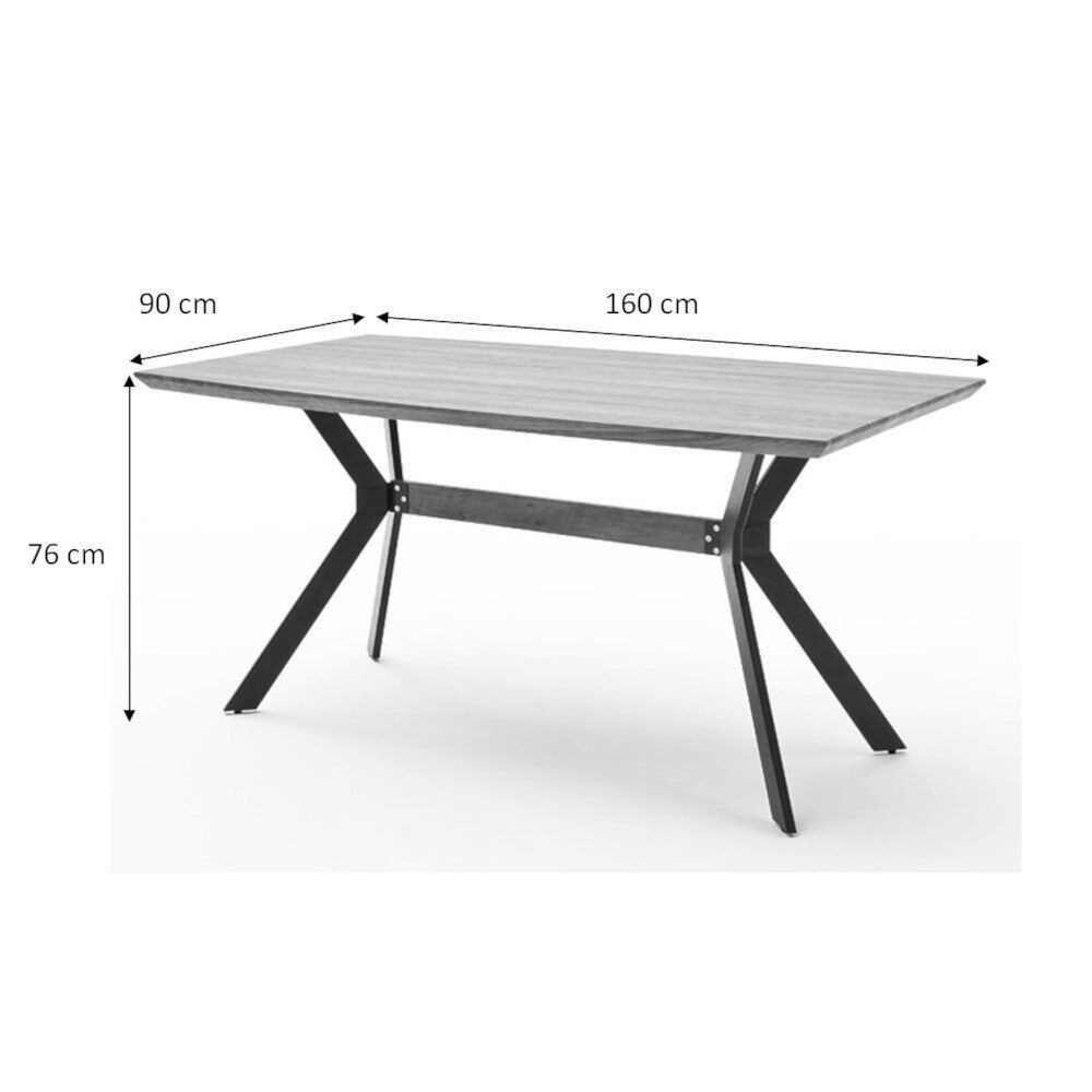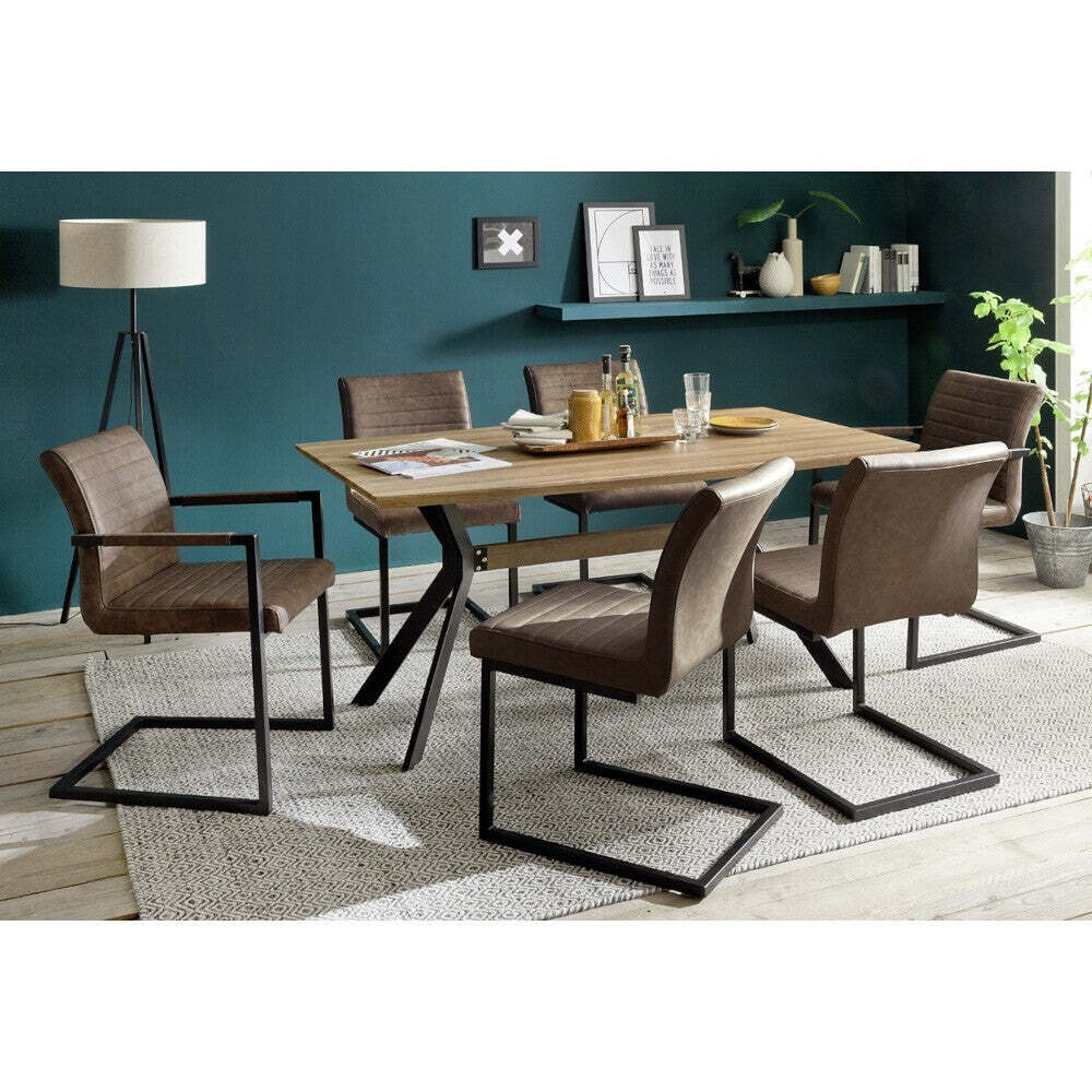 Jedálenský stôl LouisŠtýlový jedálenský stôl Louis predstavuje praktický doplnok do vašej jedálne. Svojím prírodným prevedení ľahko zapadne do každého interiéru, prírodný dekor je stále obľúbeným dekorom nábytku. Pri obdĺžnikovej doske sa bez problémov naje až 6 osôb. Vďaka elegantne riešeniam ohnutia nôh sa nemusíte báť o svoje kolená ak stolu si môžu sadnúť aj vyššie osoby. Štyri nohy z kovového materiálu v čiernej farbe dodávajú stolu pevnosť a stabilitu, zatiaľ čo vrchná doska je z laminovanej drevotrieskovej dosky (LDTD) v dekore divokého duba. Tento materiál zaručuje stolu dlhú životnosť a odolnosť. |