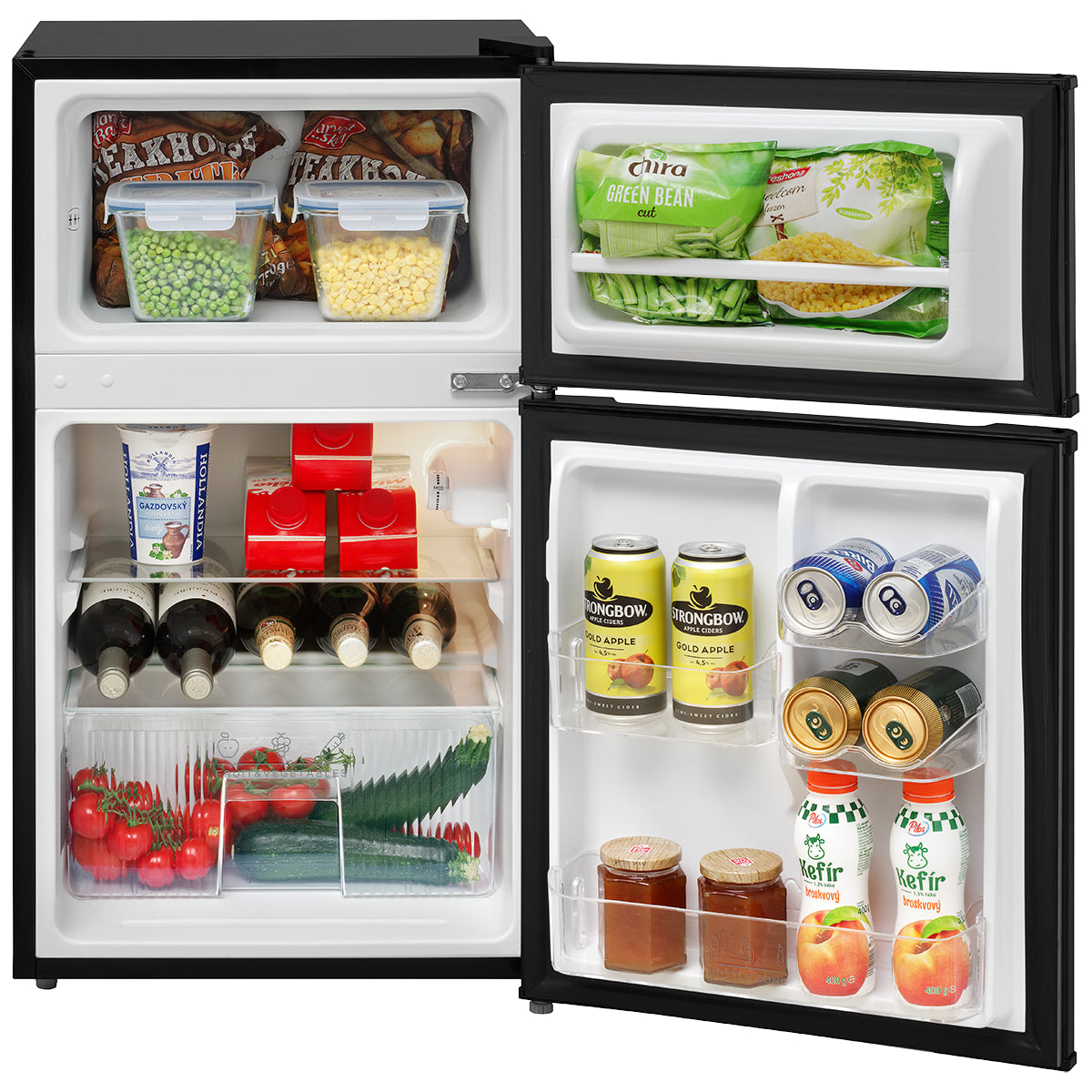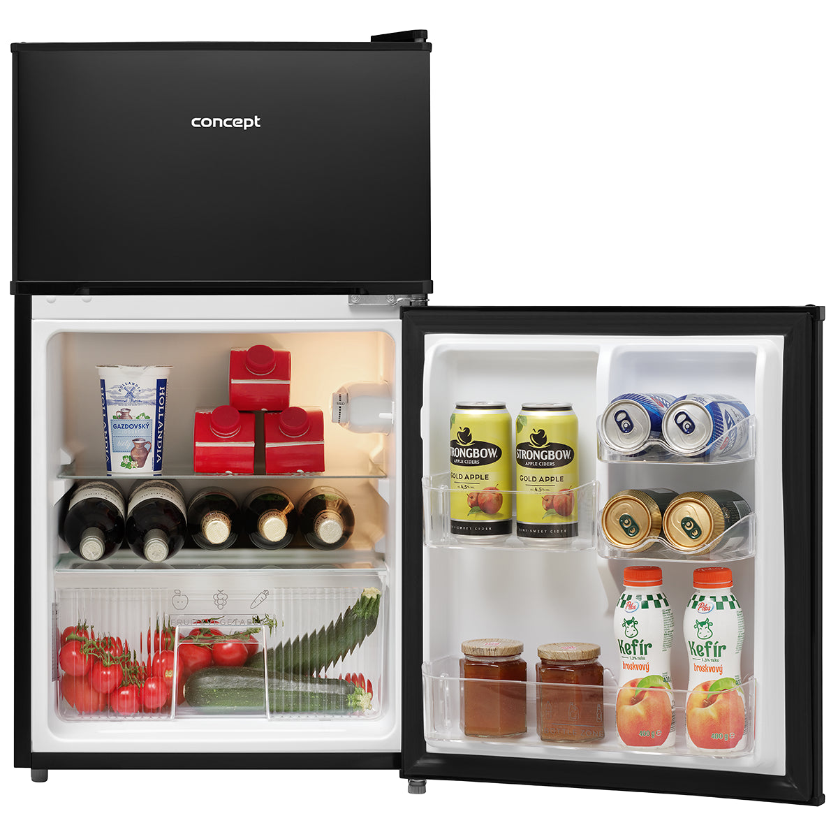 Kombinovaná chladnička s mrazničkou hore Concept LFT2047BCNDvojdverová chladnička od Conceptu je ideálnym riešením pre tých, ktorí hľadajú spoľahlivý a priestorovo nenáročný spotrebič. S celkovým objemom 87 litrov ponúka dostatok miesta ako na chladenie, tak na mrazenie potravín. Chladiaci priestor s kapacitou 61 litrov je vybavený dvoma sklenenými policami a priestrannou zásuvkou na ovocie a zeleninu, čo uľahčuje organizáciu potravín. Na dverách chladničky sa nachádzajú praktické priehradky na drobné potraviny. Horná časť chladničky potom zaberá mraznička s objemom 26 litrov, ideálna pre skladovanie mrazených potravín. |