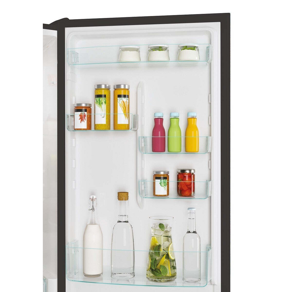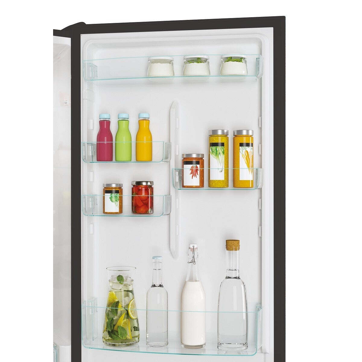 Bezpečnosť a odolnosťPolice z bezpečnostného skla sú extrémne bezpečné a odolné na skladovanie všetkých vložených potravín. Ich zaoblený a elegantný dizajn tiež uľahčuje čistenie bez toho, aby sa do štrbín usadzovali nečistoty. |