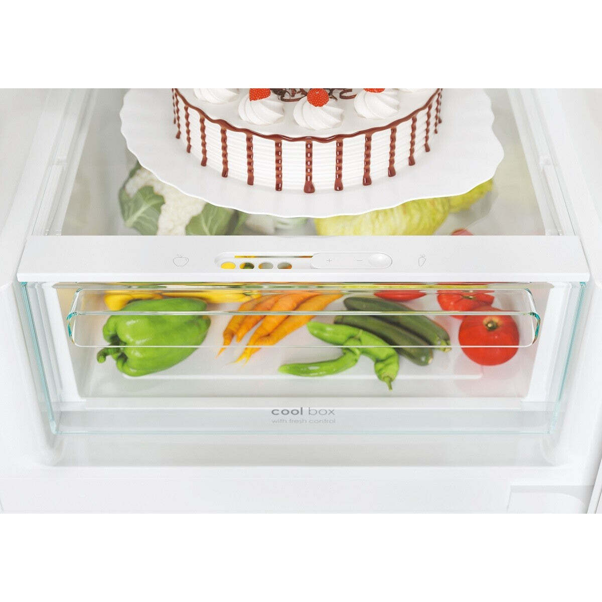Praktická zásuvka Cool BoxPriehľadná a ergonomická zásuvka umožňuje optimálne skladovanie ovocia a zeleniny. Zásuvka Cool Box vďaka jednoduchej mechanickej regulácii vlhkosti zaistí, že budú dlhšie čestvé a zabránia tak prípadnému plytvaniu s potravinami. |