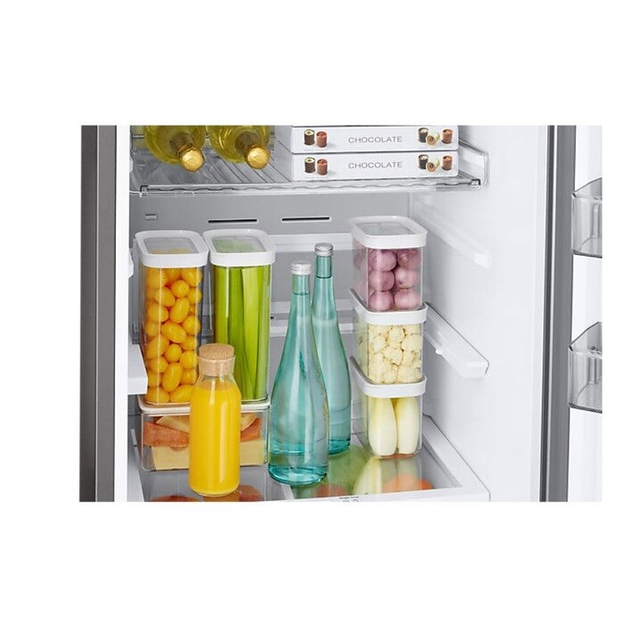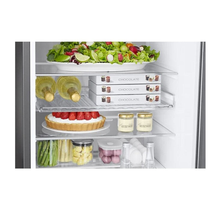 Zväčšený vnútorný priestorTechnológia SpaceMax zmenšila steny chladničky Bespoke bez toho, aby tým utrpela jej výkonná izolácia. Zachováva si tak obvyklú hĺbku 600 mm a perfektne zapadne medzi váš kuchynský nábytok, ale vo vnútri nájdete veľkorysý objem 390 litrov pre ešte viac vašich obľúbených dobrôt. |
