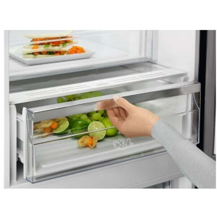 Jedlo čerstvé a sviežeOddelený systém chladenia vzduchu TwinTech udržiava potraviny vo vašej chladničke dlhšie čerstvé. Cirkulácia vzduchu prebieha v chladničke a mrazničke zvlášť, a tým sa udržiava konštantná hladina vlhkosti a teploty. Potraviny sú tak skladované v dokonalom prostredí a chránené proti vysychaniu. |