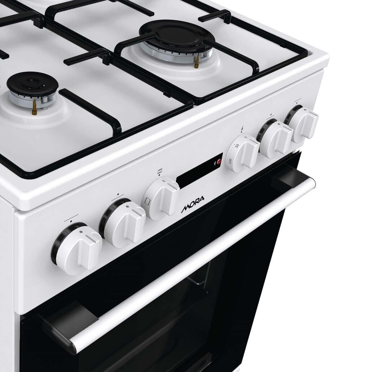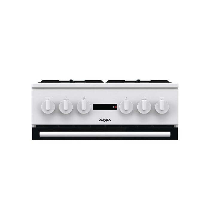 Kombinovaný sporák Mora v klasickom bielom prevedení oplýva plynovou doskou so štyrmi horákmi a výkonnou rúrou s regulovateľnou teplotou od 50 do 275 °C. Zariadenie poteší aj chladnými dvierkami alebo ľahkým čistením Eco Clean. |