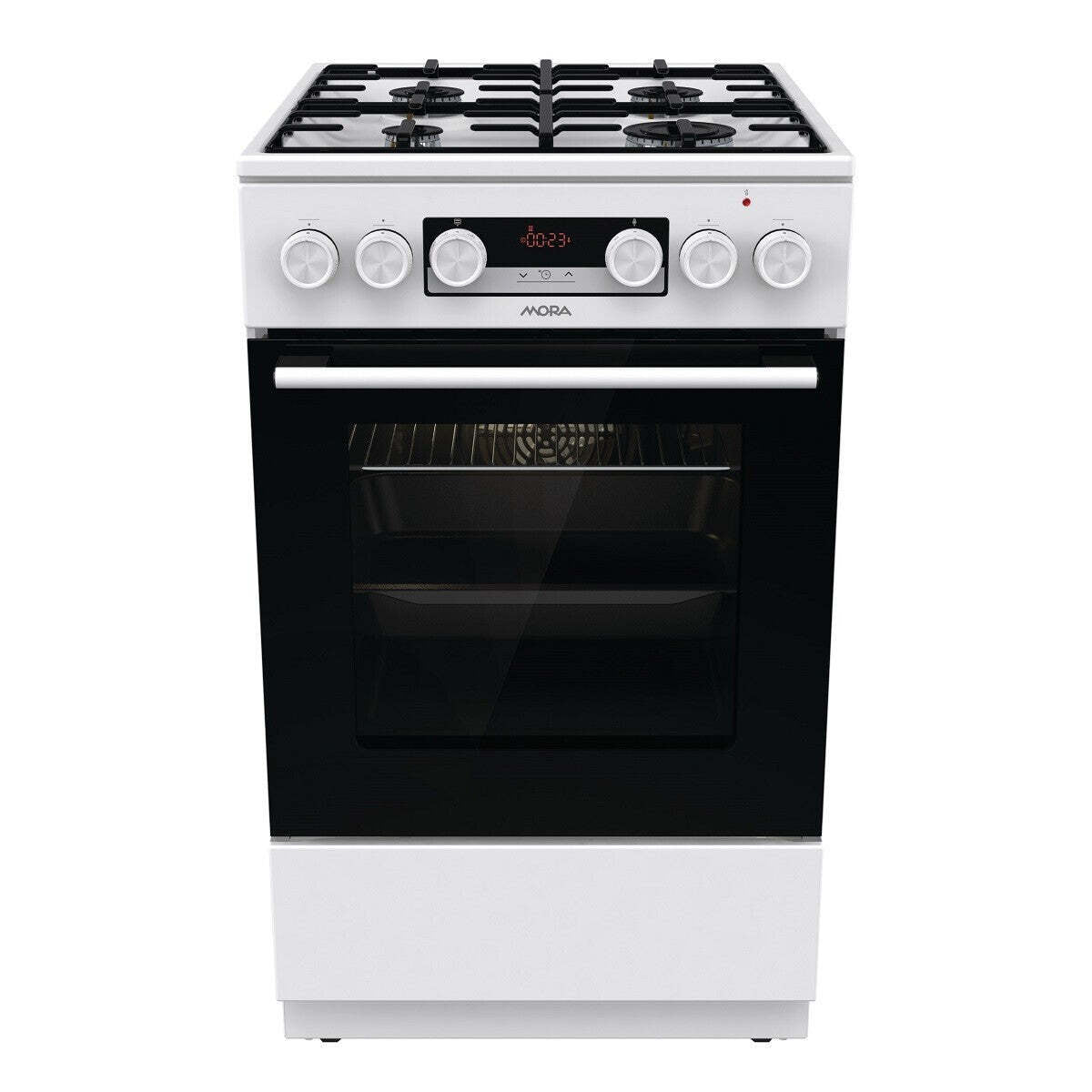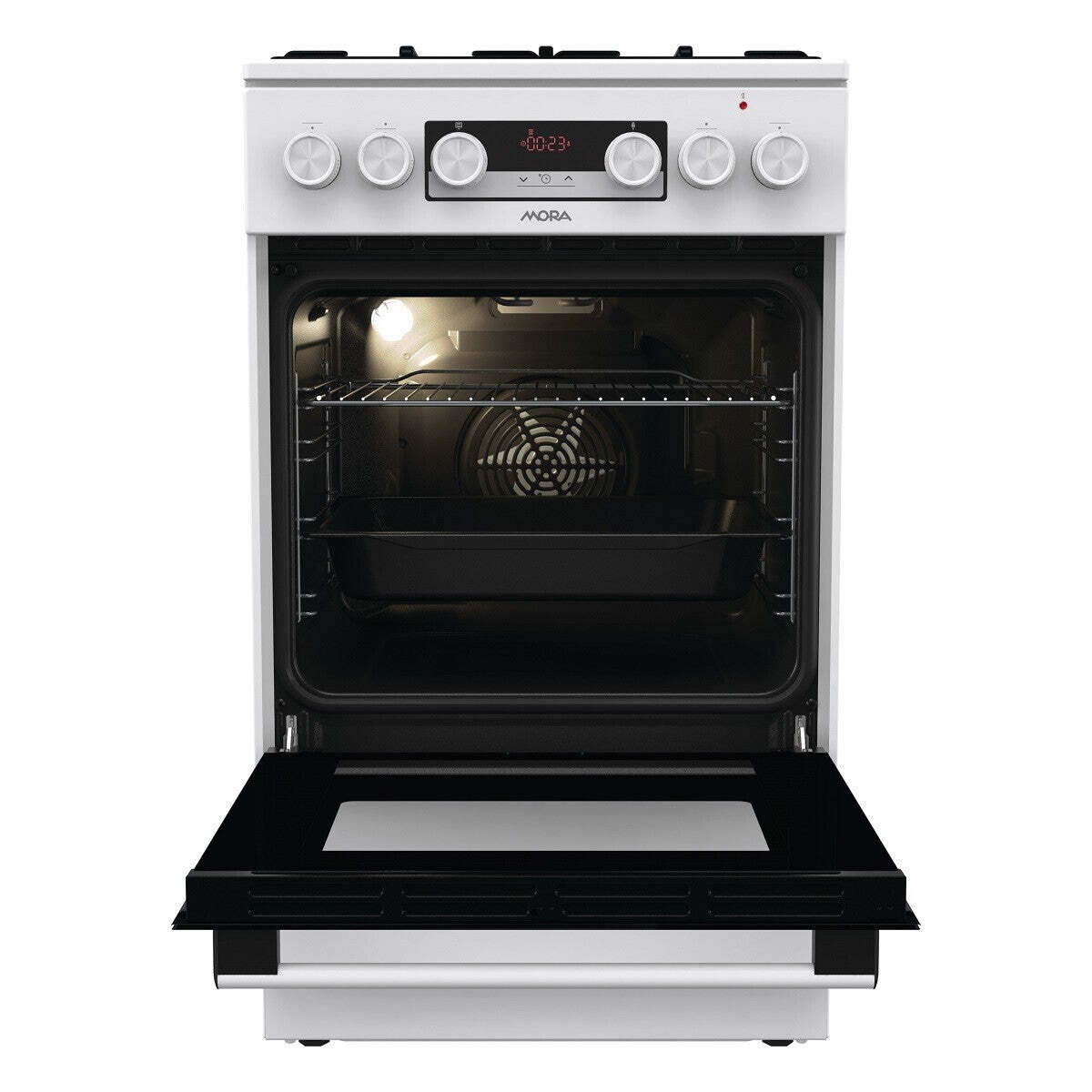 Kombinovaný sporák Mora v bielom prevedení oplýva plynovou doskou so štyrmi horákmi a výkonnou rúrou s regulovateľnou teplotou od 50 do 275 °C. Zariadenie poteší aj chladnými dvierkami, rýchleho predhrievania alebo ľahkým čistením Eco Clean. |