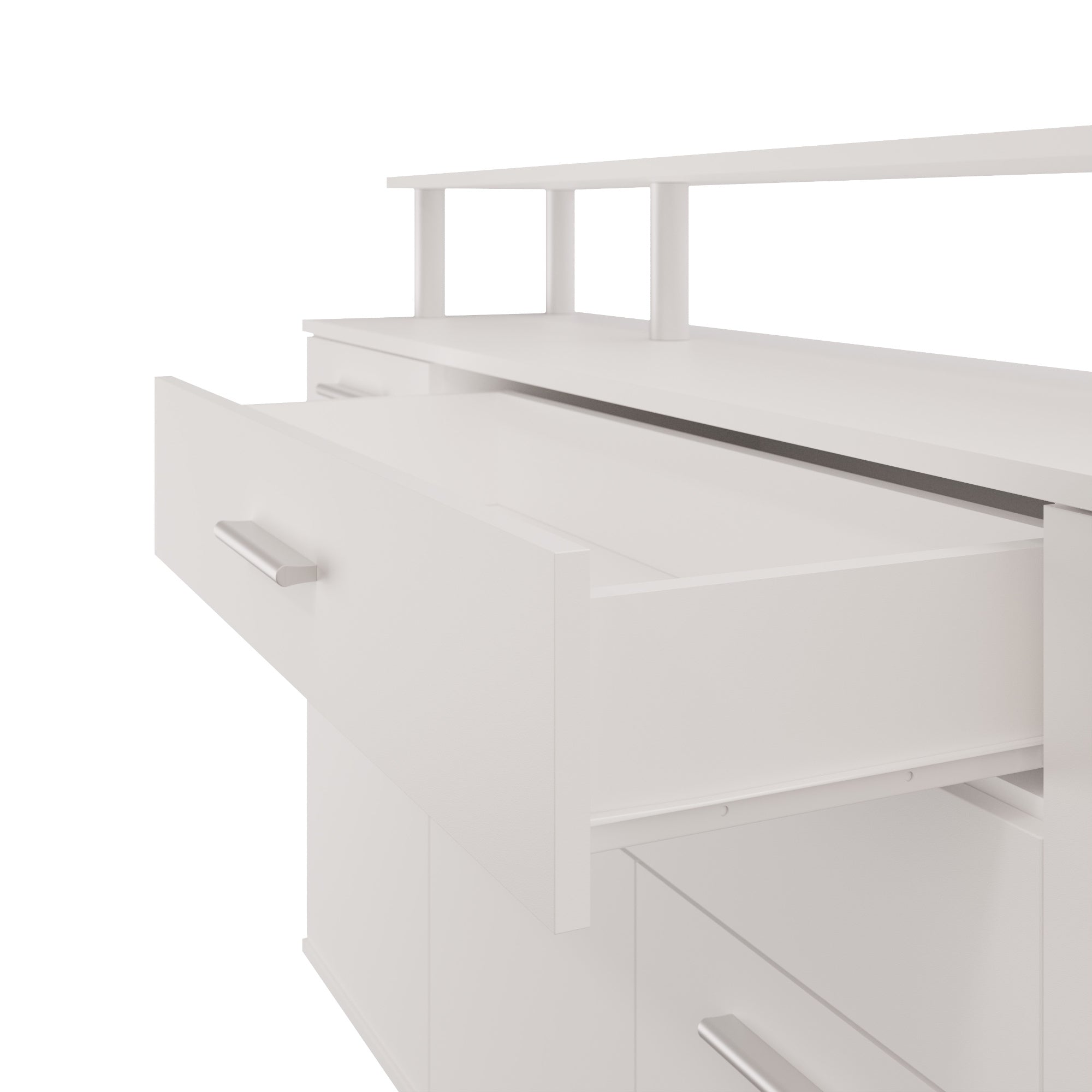Komoda do obývacej izby Hanno 2Viacúčelová komoda do obývačky Hanno 2 sa vyznačuje moderným dizajnom. Úložný priestor v podobe 2 zásuviek a 4 skriniek dopĺňa horná otvorená polica. Všetky dôležité veci sú vždy po ruke. Vďaka bielej povrchovej úprave bude komoda bez problémov ladiť s ostatným nábytkom. Jednoduchú údržbu komody zabezpečuje korpus, ktorý je vyrobený z kvalitnej drevotrieskovej dosky LDTD. Ak ste milovníkom praktických a zároveň oku lahodiacich vecí, komoda do obývačky Hanno 2 je pre vás ako stvorená. ![]() |