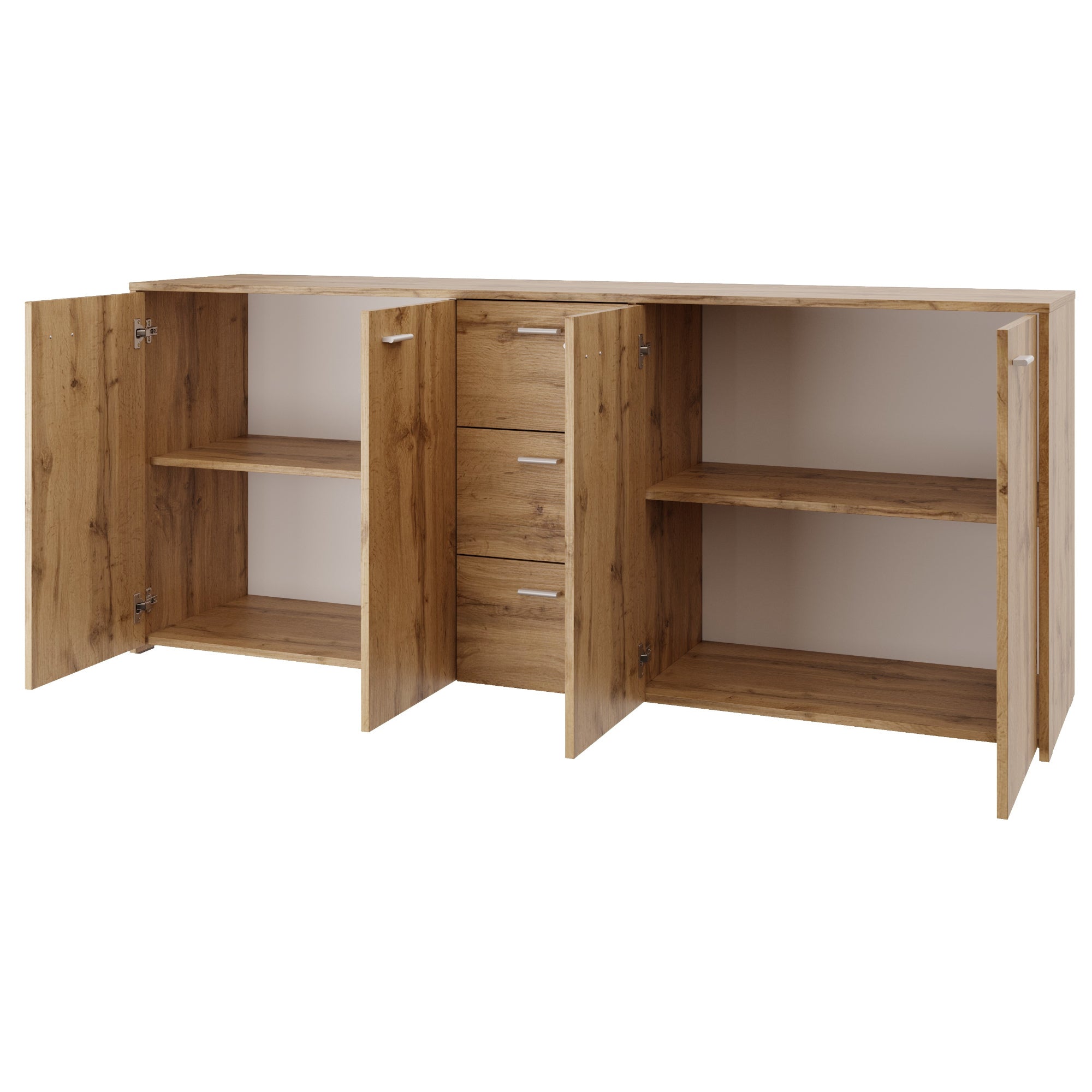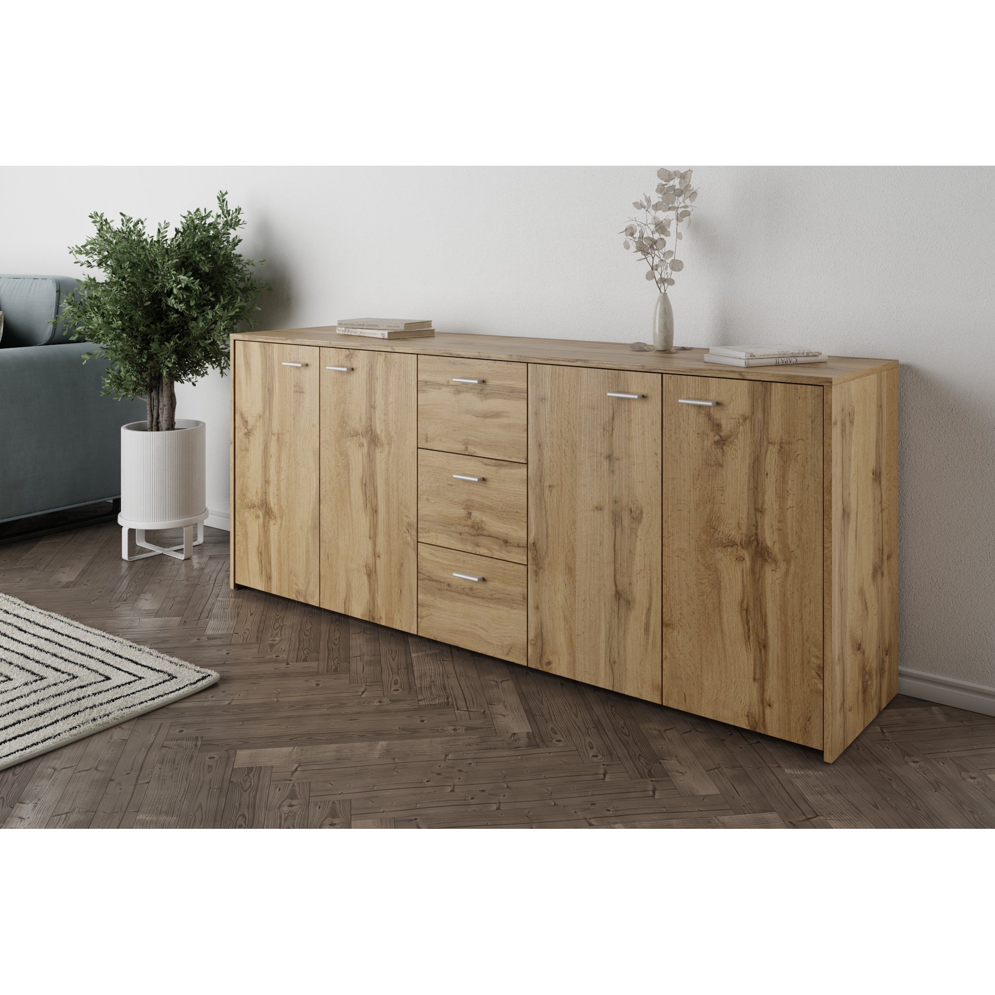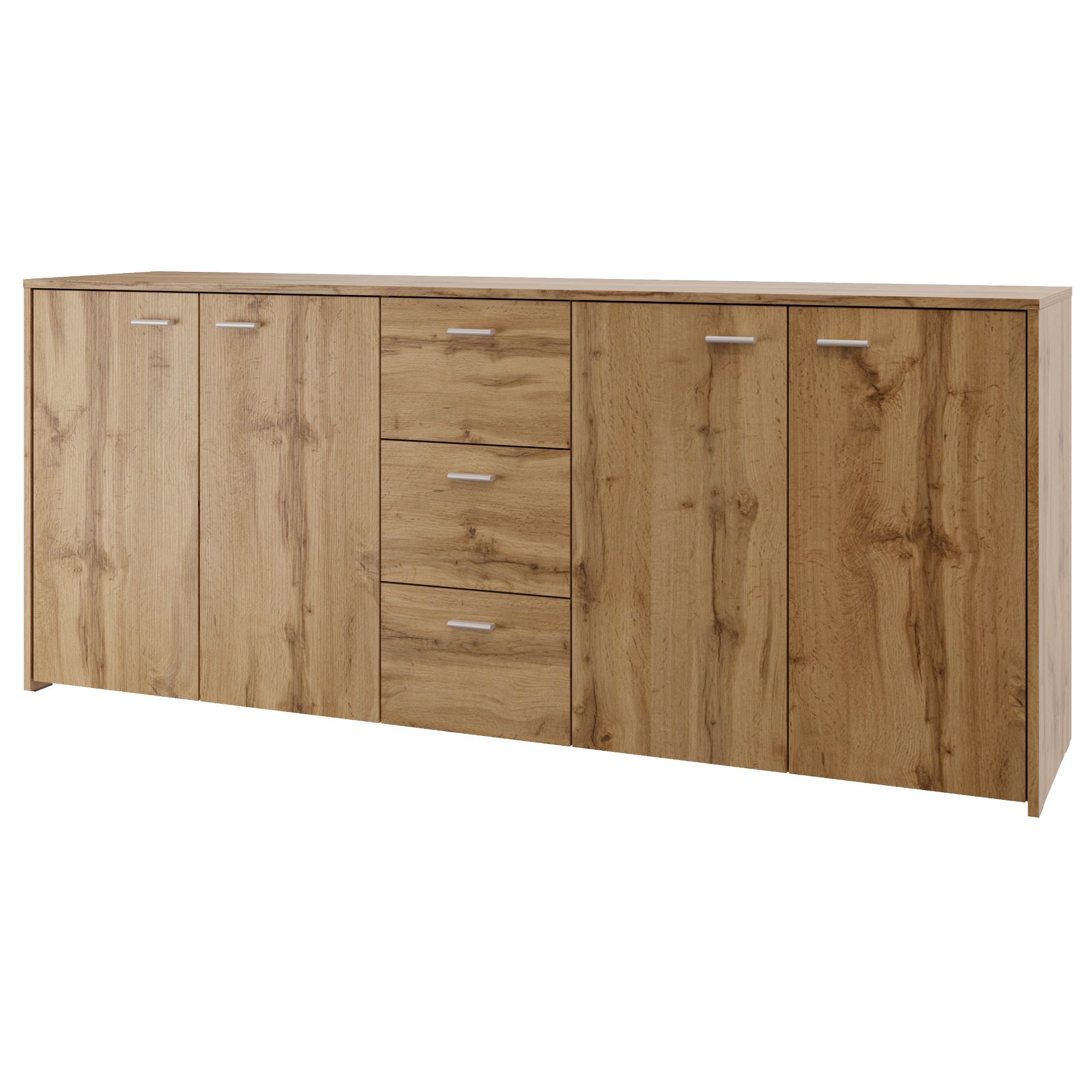 Komoda do obývacej izby Hugo 2Komoda Hugo 2 zaujme najmä svojím elegantným vzhľadom a praktickosťou. Medzi jej najväčšie prednosti patrí prehľadne usporiadaný úložný priestor, moderný dizajn a kvalitný materiál. Komoda sa skladá z troch častí. Po stranách sa nachádzajú 2 priestranné skrinky s policami, v strede sú 3 praktické zásuvky. Vďaka tomuto rozdeleniu budete mať všetko systematicky usporiadané a vždy po ruke. Vrchná časť komody je presne to miesto, kde si môžete vystaviť rámčeky na fotografie, kvety alebo iné dekorácie. Skrinka a čelné plochy sú vyrobené z masívnych LDTD dosiek s matnou povrchovou úpravou. Vďaka rovným líniám a povrchovej úprave dub wotan pôsobí komoda decentne a elegantne. Celkový dojem dotvárajú strieborné plastové úchyty, s ktorými sa ľahko manipuluje. Môžete ju použiť v obývacej izbe, spálni alebo predsieni, vďaka svojmu dizajnu sa hodí naozaj všade. Vďaka svojim rozmerom je vhodná aj do väčších miestností. Ľahko ju skombinujete s farebnými a decentnými doplnkami, konečný vzhľad vo vašom interiéri je len na vás. ![]() |