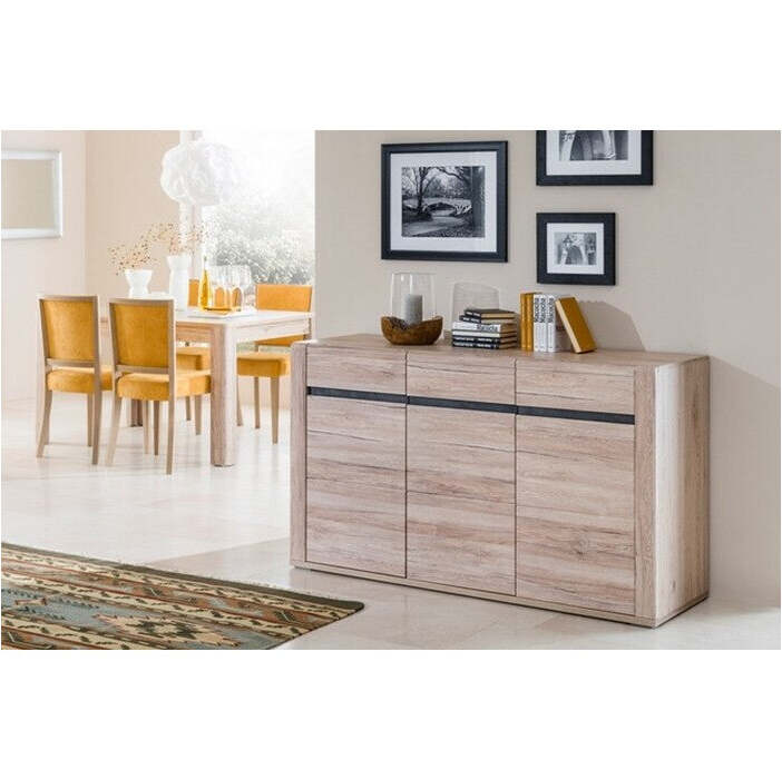 Prírodný štýl komody Minneota premení váš interiér na harmonický domov plný pokojnej atmosféry. Práve spomínaný štýl a klasické vyhotovenie je tým hlavným rysom, ktorý je tak typický pre tento program. Všetko zjednotí dekor dub san remo sand.