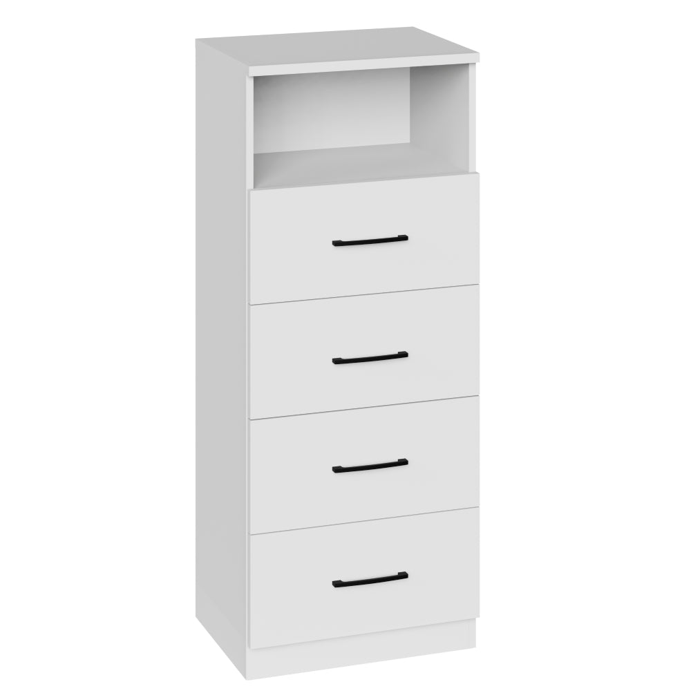 Praktická komoda MorganKomoda Morgan je praktickým a zároveň aj vkusným dizajnovým doplnkom. Praktické členenie vo forme 4 zásuviek ponúka dostatok úložného priestoru. Na hornú dosku komody je tiež možné vystaviť napr. fotografie, kvety alebo iné dekorácie. Na obdobné účely môže slúžiť aj voľný priestor medzi hornou doskou a zásuvkou. Vďaka prevedeniu v bielej farbe komoda bez problémov zapadne do väčšiny interiérov. Komoda je vyrobená z kvalitnej laminovanej drevotriesky (LDTD), ktorá vyniká dlhou životnosťou a bezproblémovou údržbou. |