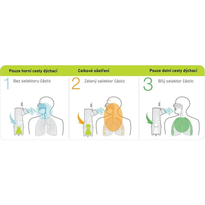 Lieči, kde potrebujeteK inhalátoru dostanete aj dva plastové klobúčiky na rozprašovaciu ampulku. Vďaka nim zacielite inhaláciu presne tam, kam potrebujete. Či už máte choroby zasiahnuté len dolné alebo horné dýchacie cesty alebo chcete celkové ošetrenie. Dostanete teda vždy optimálnu liečbu pre chorobu, ktorá vás aktuálne sužuje. |