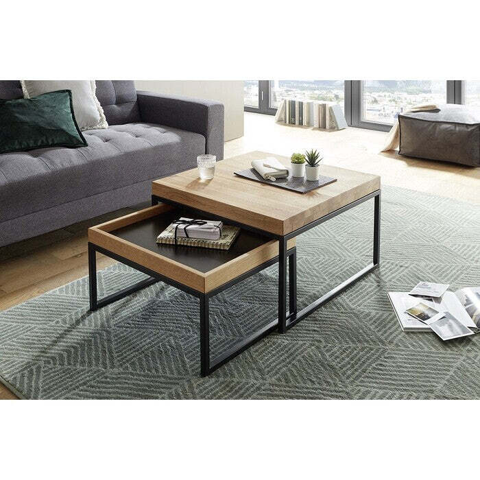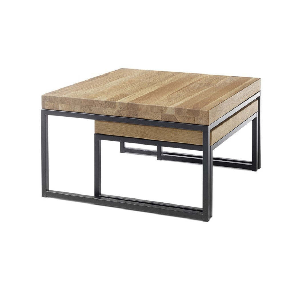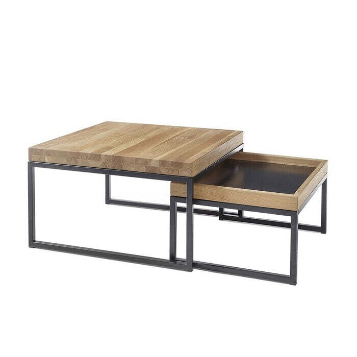 Konferenčný stolík Dorset - set 2 kusovSet dvoch konferenčných stolíkov Dorset sa stane praktickým doplnkom vášho interiéru. Ponúka dve odkladacie plochy na drobné predmety. Kvalitná konštrukcia zaručuje stabilitu a dlhú životnosť stolíkov. Horná doska stolíkov je vyrobená z MDF a vyhotovená v dekore naolejovaného duba. Kovová konštrukcia má čierny matný lak.