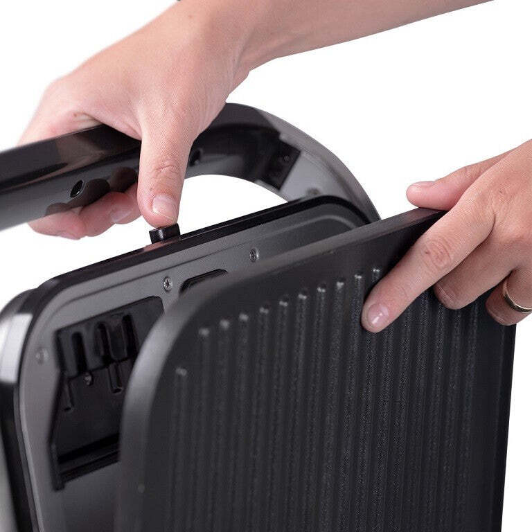 Kontaktný aj otvorenýTento spotrebič nefunguje iba ako kontaktný gril, ale môžete z neho dokonca urobiť gril otvorený. Kontaktný gril tvoria dve grilovacie dosky, ktorých povrch je ošetrený nepriľnavou vrstvou, vďaka ktorej sa mäso, zelenina, ani syr nebudú prichytávať a nezostanú prilepené na doskách grilu. Prebytočný tuk a šťavu uvoľnenú z jedla gril odvádza do odkvapkávacej misky. |