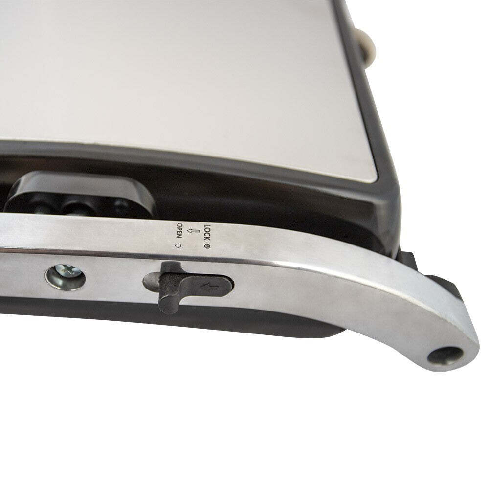 Regulácia teplotyPráca s grilom je bezpečná a to predovšetkým vďaka tepelne izolovanej rukoväti.Teplotu je potom možné regulovať otočným kolieskom na prednej strane spotrebiča a to v rozmedzí od 140 °C do 200 °C. |