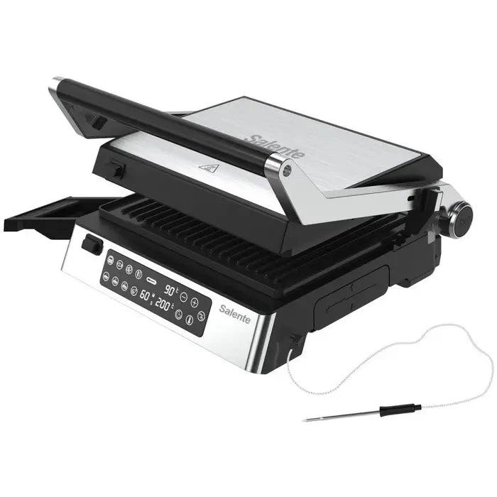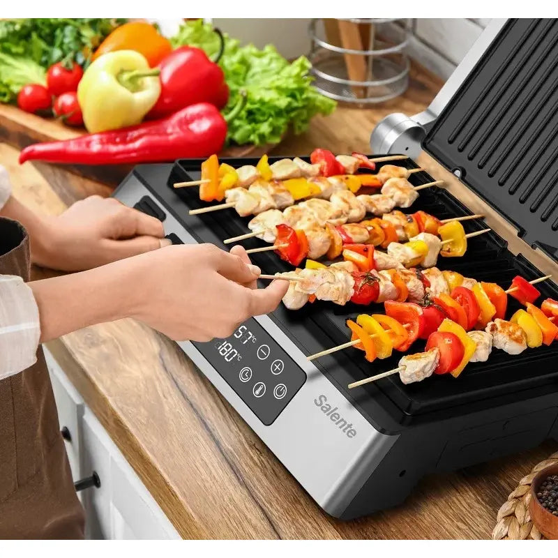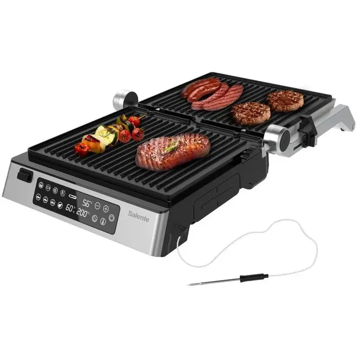 Kontaktný grilSalente FlameProChcete posunúť svoje grilovanie na vyššiu úroveň? Zaobstarajte si na letné grilovanie aj skutočného profesionála. Elektrický kontaktný gril Salente FlamePro griluje automaticky a vďaka špeciálnej nepriľnavej povrchovej úprave oboch grilovacích dosiek nepotrebuje olej. Čo je však najdôležitejšie, má teplotnú sondu, vďaka ktorej budete mať prípravu šťavnatých steakov pod kontrolou. Jeho obsluha je jednoduchá a intuitívna a spokojní budú všetci, šéfkuchár aj stravníci. |