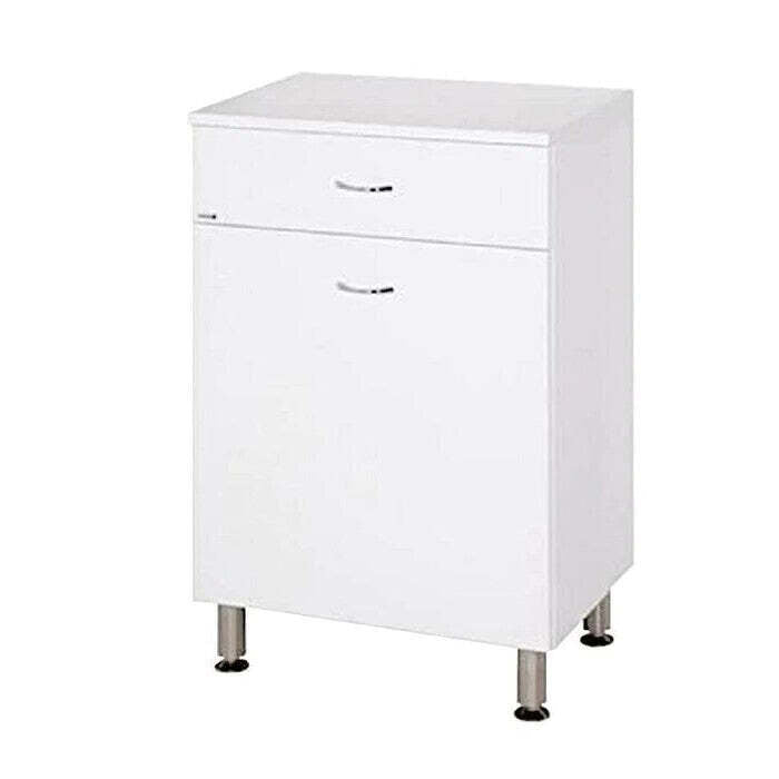Kúpeľňová skrinka Cara MiaPraktická kúpeľňová skrinka Cara Mia. Ponúka úložný priestor v podobe zásuvky a dvierok, ktoré navyše obsahujú vyberateľný kôš na bielizeň, ktorý môžete jednoducho vybrať a odniesť k práčke. Vďaka svojim menším rozmerom vám skrinka v kúpeľni nezaberie veľa miesta. Skrinka má biele lakované boky aj predné plochy v lesklom vyhotovení, vďaka čomu ideálne zapadne do väčšiny kúpeľní. Skrinka je dodávaná zmontovaná, môžete ju tak začať okamžite používať.