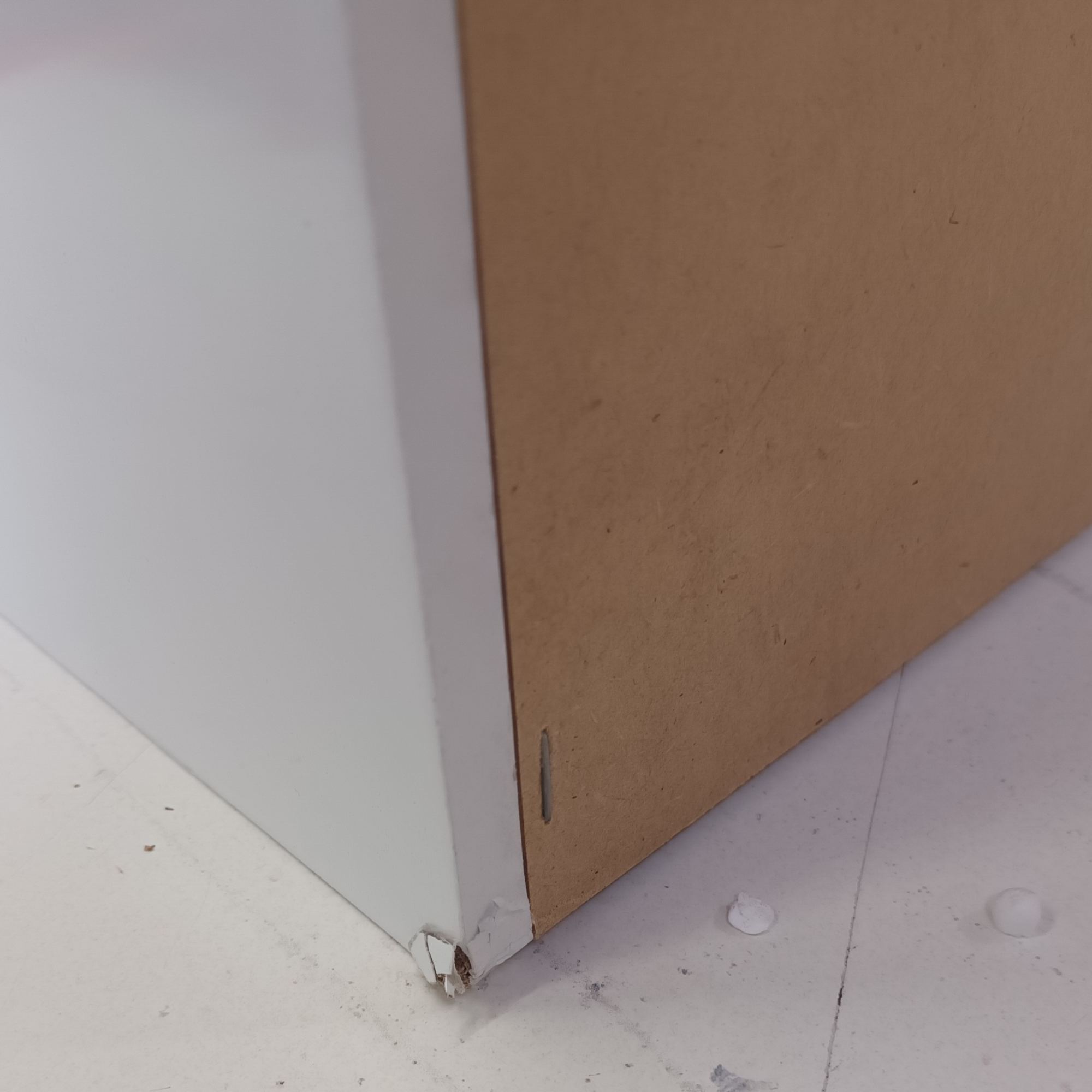 Chýbajúce umývadlo, narazený pravý zadný spodný roh