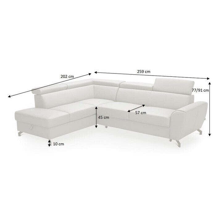 Rozmery rohovej sedačky Monako 2Rozmery sedacej súpravy sú 259x91x202 cm a jej rohové riešenie sedačky šetrí miesto obývačky. |