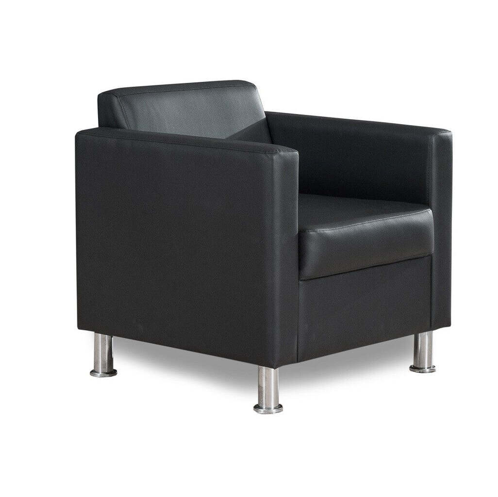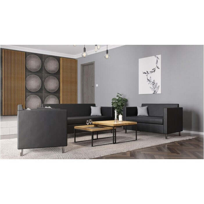 Kožené kreslo CarreModerné kreslo Carre je ideálnou voľbou pre každého, kto si chce dopriať pocit komfortu a príjemnej relaxácie. Vďaka svojmu modernému tvaru a čiernej farbe skvele zapadne do každej obývačky aj iných častí interiéru. Jeho kvalitné spracovanie ponúka maximálne pohodlie a dlhú životnosť. Poťah z eko kože v kombinácii so striebornými nožičkami potom kreslu zaisťujú elegantný vzhľad. Ako súčasť radu Carre môže byť kombinované s dvojsedačkou a trojsedačkou z rovnakého radu pre vytvorenie individuálne sedacej zostavy.