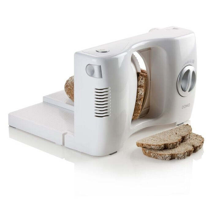 Bezpečný a výkonnýKrájač na chlieb Domo MS 171 obsahuje bezpečnostný vypínač. Vďaka indukčnému motoru, ktorý sa menej zahrieva, je možné krájač chleba používať nepretržite dlhšiu dobu. Domo MS 171 pracuje s príkonom 120 W. Hmotnosť krájača je 2,55 kg, rozmery balenia sú 32 x 12 x 20 cm. |
