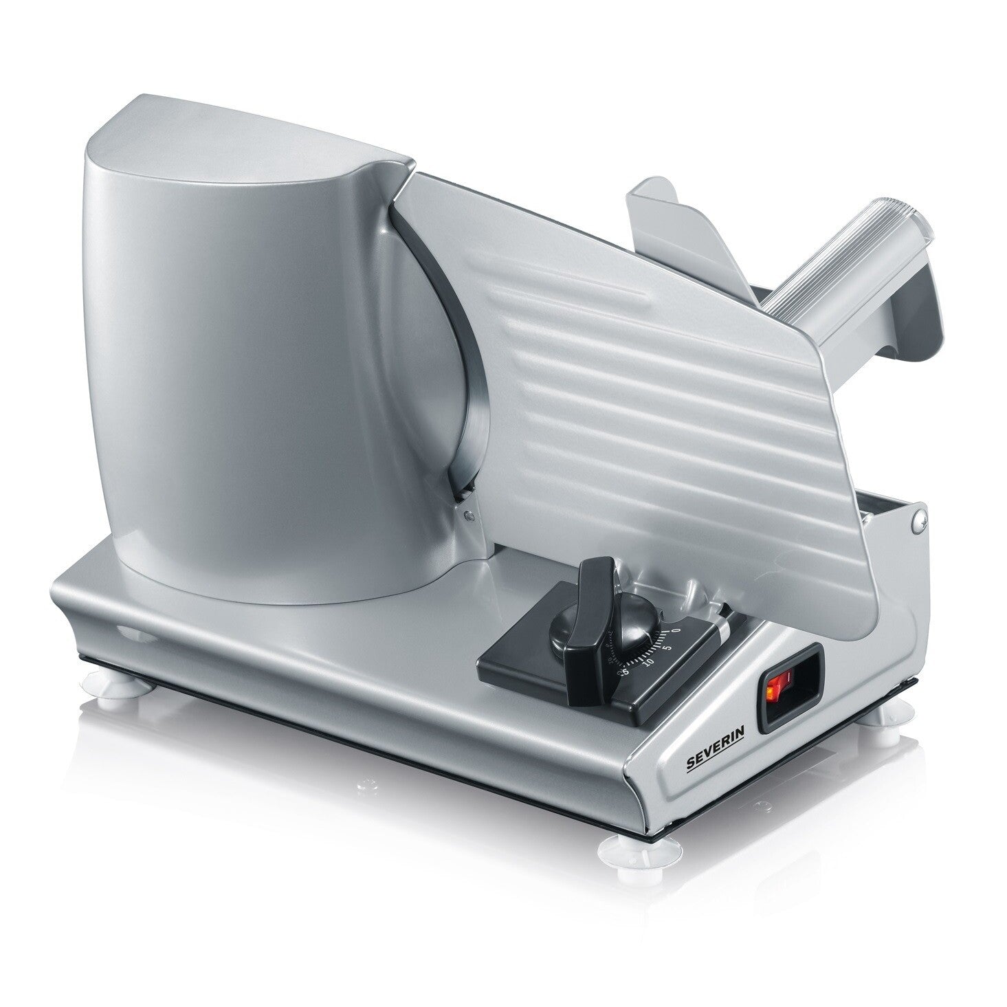 BezpečnýBezpečnosť pri obsluhe zaisťujú plastový podávač a gumové protišmykové nožičky. Krájač disponuje napájacím káblom s dĺžkou 1,5 m , ktorý v prípade nutnosti naviniete do priestoru na to určenému, potom možno spotrebič uskladniť v skrini alebo v zásuvke. |