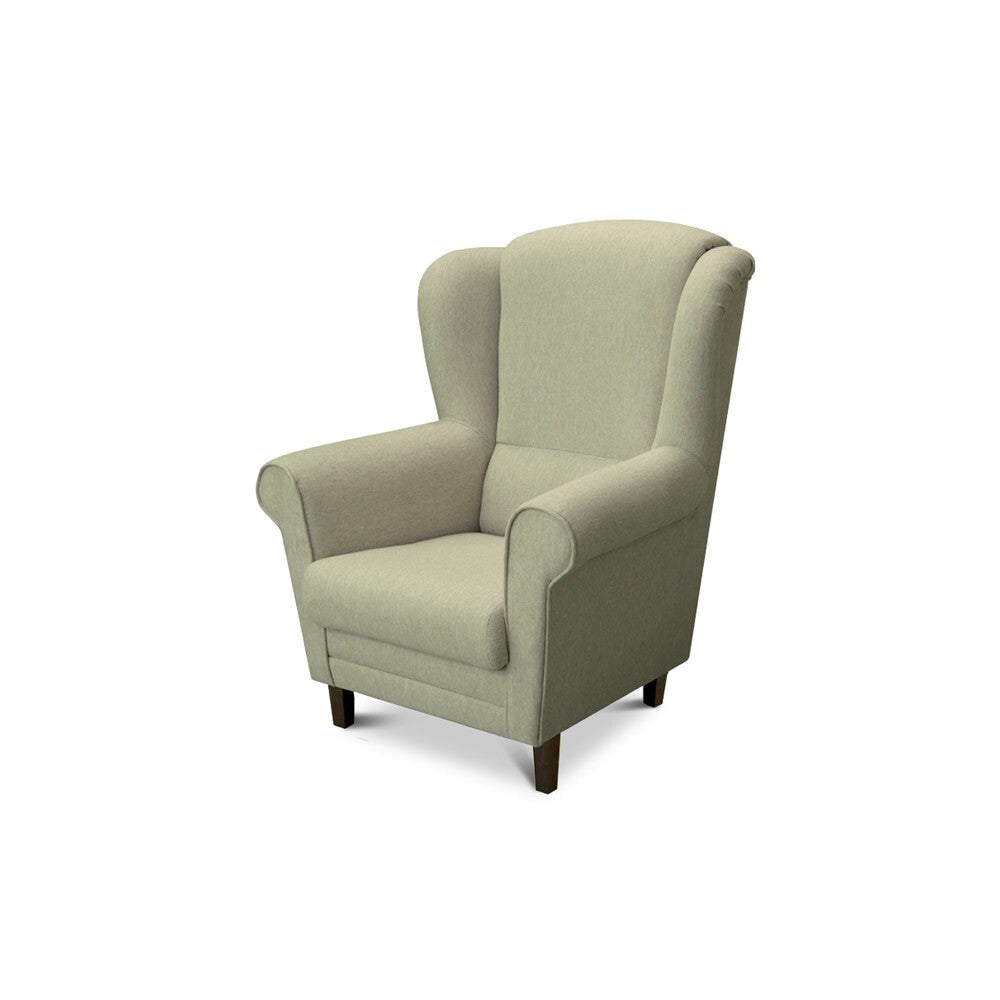 Kreslo ušiak je možné kúpiť v béžovom dekore. Štruktúra tejto látky je nerovnomerná a vytvára jedinečný efekt.