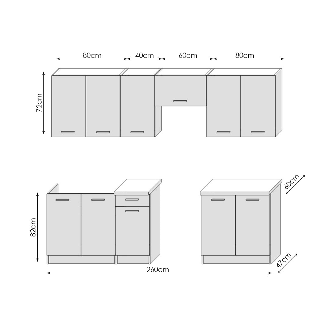 Kuchyňa Ecolade pre čisté moderné vareniePotrebujete vniesť do vašej kuchyne svieži vietor? Kuchynská linka Ecolade je perfekné riešenie do malého moderného bytu. Je kompaktná a jednoduchá a vytvorí perfektné miesto vo vašej domácnosti , kde budete s radosťou variť , cítiť sa príjemne a pohodlne. Kombinuje totiž moderný industriálny vzhľad s praktickým a systematicky rozmiestneným úložným priestorom , s ktorým budete mať všetko po ruke. Kuchyňa je vyhotovená v prírodných tónoch duba artistan so zaujímavým dekorom s čiernobielymi prvkami. S matnou povrchovou úpravou pôsobí táto kombinácia čisto a elegantne. Zaujme čistými líniami a skvele zapadne do minimalistického interiéru. Sa s ďalšími 4 hornými skrinkami , z čoho je jeden určený nad digestor, a 3 dolnými , ponúka kuchyňa Ecolade dostatok miesta na vaše taniere aj poháre. Pri výrobe kuchyne bolo myslené aj na rúru so sporákom , pre nich je pripravený voľný priestor . Delená pracovná doska s hrúbkou 38 mm je dodávaná k dvom spodným skrinkám . K drezovej skrinke odporúčame dokúpiť celoplošný drez (800x600 mm), súčasťou tejto skrinky pracovná doska nie je. Pracovná doska kuchynského bloku Ecolade je vyhotovená v dekore čiernej farby. Je delená na dve časti. Väčšia (80x60 cm) je určená pre dvojdverovú skrinku, menšia (40x60 cm) potom pre úzku skrinku so zásuvkami. Hrúbka pracovnej dosky je 38 mm.