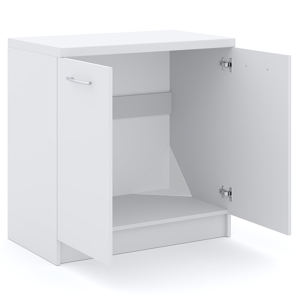 Paloma 2 je skvelou voľbou na štýlové zariadenie kuchyneKuchyňa Paloma 2 vytvorí vo vašej domácnosti dokonalé miesto, kde sa vám bude dobre variť, kde sa budete cítiť pohodlne a príjemne. Kombinuje moderný a veľmi elegantný vzhľad s praktickým a systematicky usporiadaným úložným priestorom. Kuchyňa je vyhotovená v elegantnej bielej far be s matným povrchom , táto kombinácia pôsobí veľmi elegantne. Váš pohľad upúta horná sklenená skrinka napravej strane kuchyne.Spolu s ďalšími 3 hornými skrinkami, z ktorých jedna je nad digestorom, a 3 spodnými skrinkami ponúka kuchyňa Paloma veľkorysý úložný priestor. Pri stavbe kuchyne sa myslelo aj na rúru a sporák, na ktoré je tu priestor. K dvom spodným skriniam sa dodáva delená pracovná doska s hrúbkou 28 mm.K drezovej skrinke odporúčame dokúpiť plnohodnotný drez (800x600 mm), táto skrinka neobsahuje pracovnú dosku. Pracovná doska kuchynského bloku Paloma 2 je vyhotovená v bielej farbe. Je rozdelená na dve časti. Väčšia (80x60 cm) je určená pre dvojdverovú skrinku, menšia (40x60 cm) pre úzku skrinku so zásuvkami. Hrúbka pracovnej dosky je 28 mm.