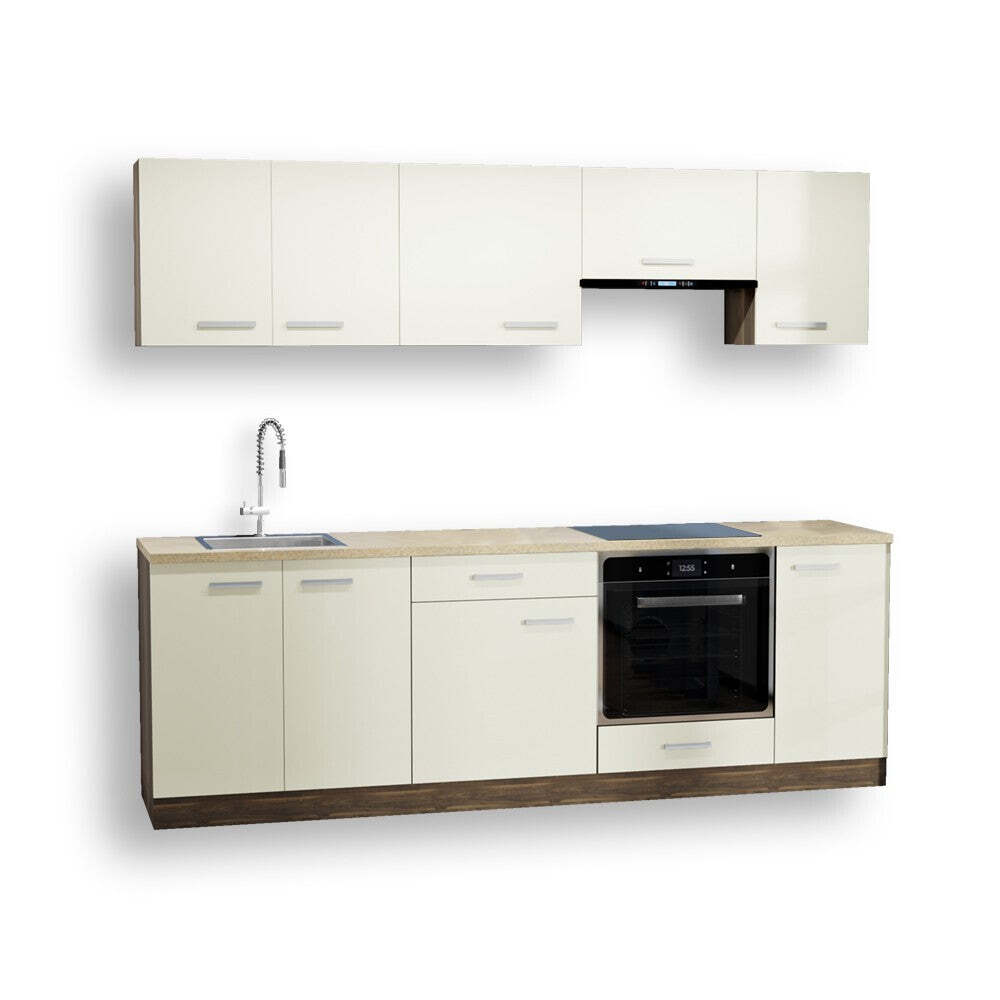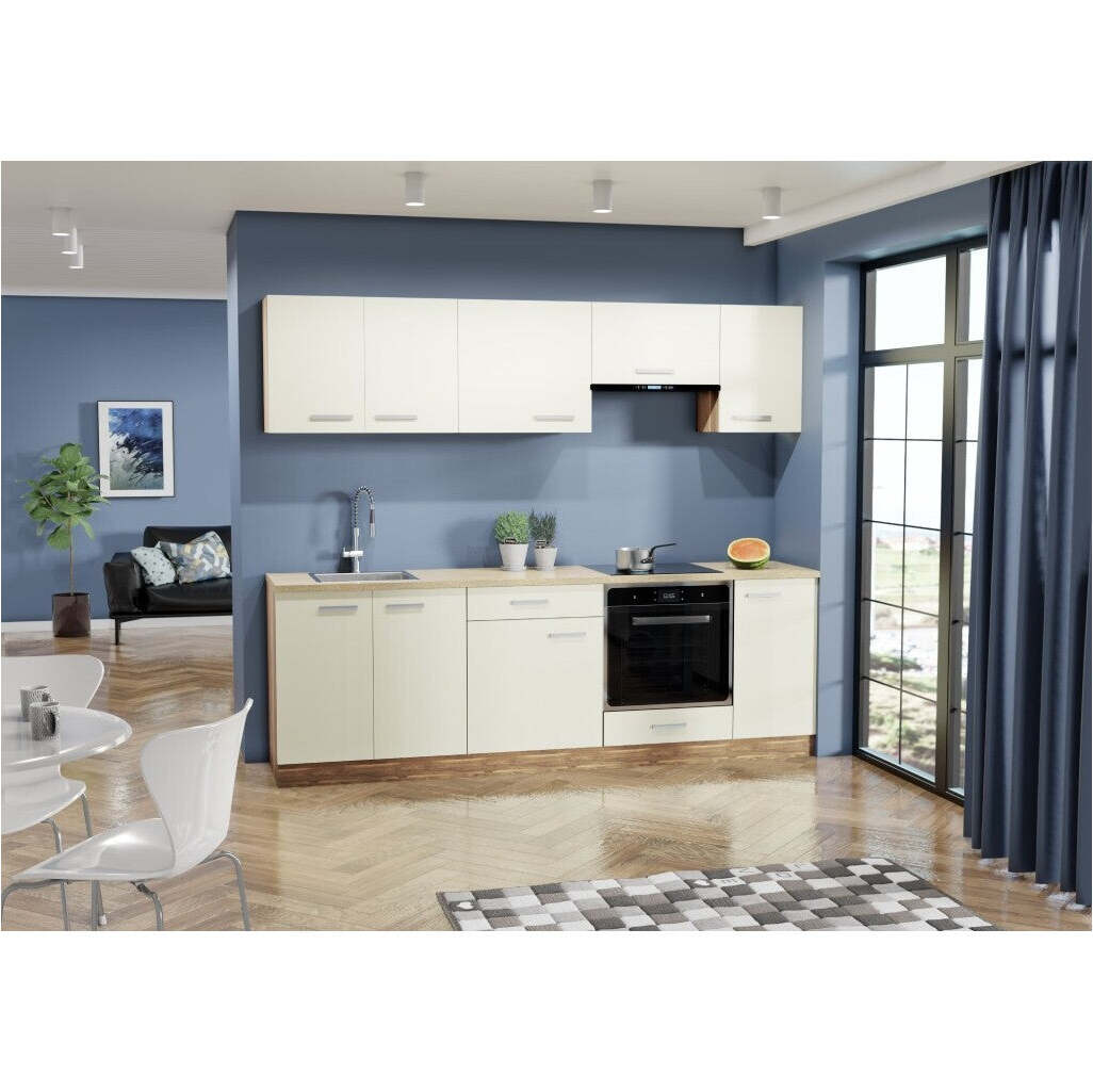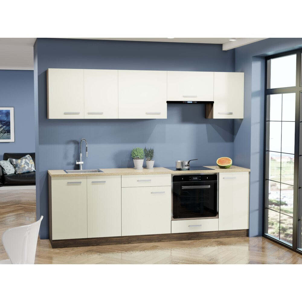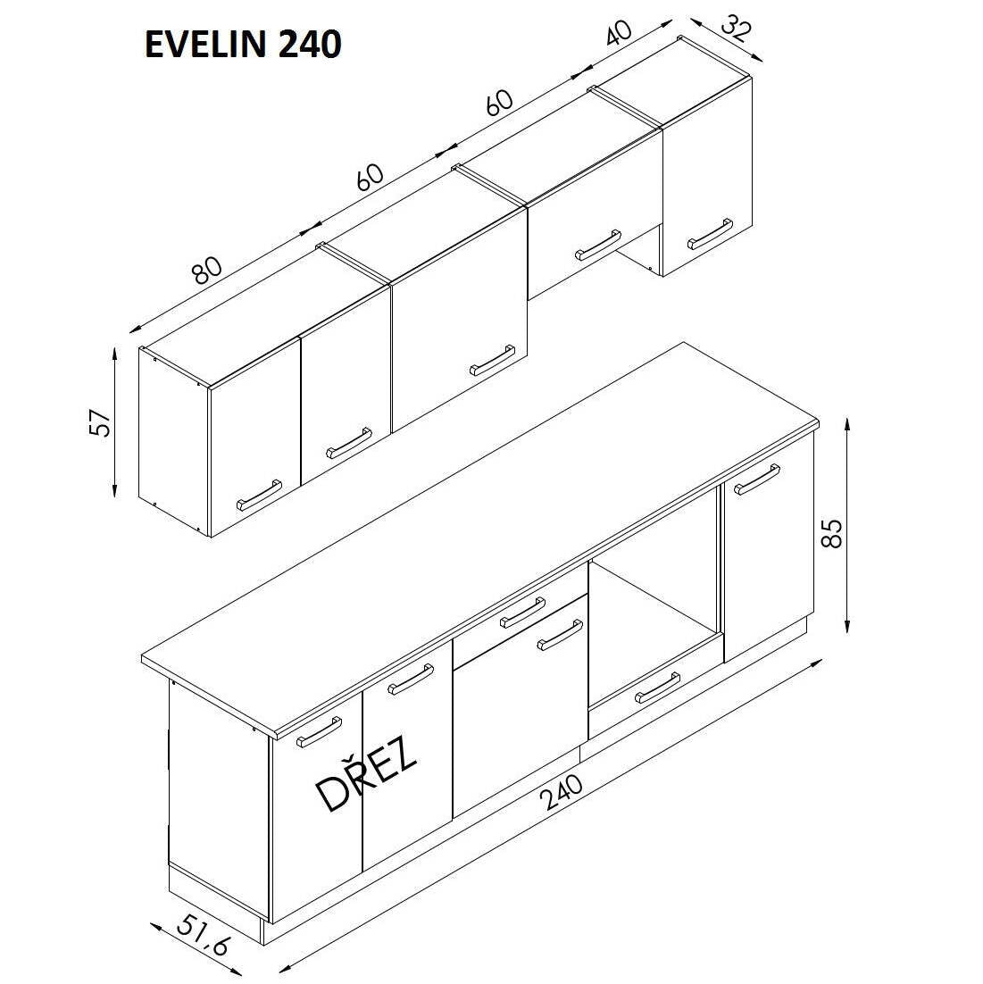 Sektorová kuchyňa Evelin je skvelou voľbou ako štýlovo zariadiť vašu kuchyňuModerná kuchyňa Evelin sa stane príjemným miestom, kde budete s radosťou pripravovať vaše jedlá.Elegantnákuchyňa s dĺžkou 240 cm disponuje prakticky členeným, veľkorysým úložným aj pracovným priestorom, ktorý zaisťujecelkom 8 skriniek v hornej aj spodnej časti kuchyne. Vzhľad kuchynskej linky Evelin určuje predovšetkým zvolený dekor. Tým je dekor magnólie v matnom vyhotovení, čo je elegantná a moderná voľba, hodiaca sa takmer do akéhokoľvek interiéru. V kombinácii s korpusom v dekore orecha vyzerá kuchynská linka naozaj skvele. Jednotlivé skrinky kuchyne sú variabilné a môžete ich tak poskladať rovnako ako na vyobrazených fotografiách alebo akokoľvek inak budete potrebovať.
