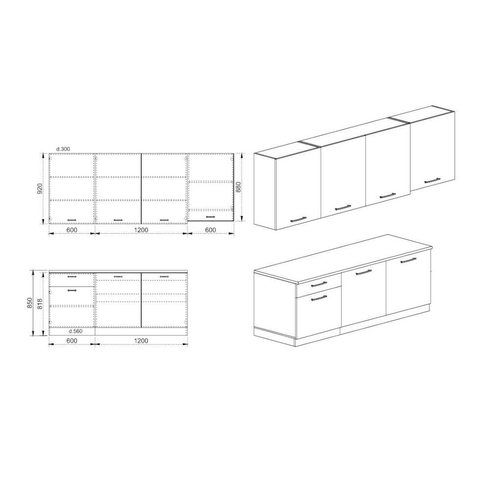 Rozmery jednotlivých skriniek:Horné skrinky