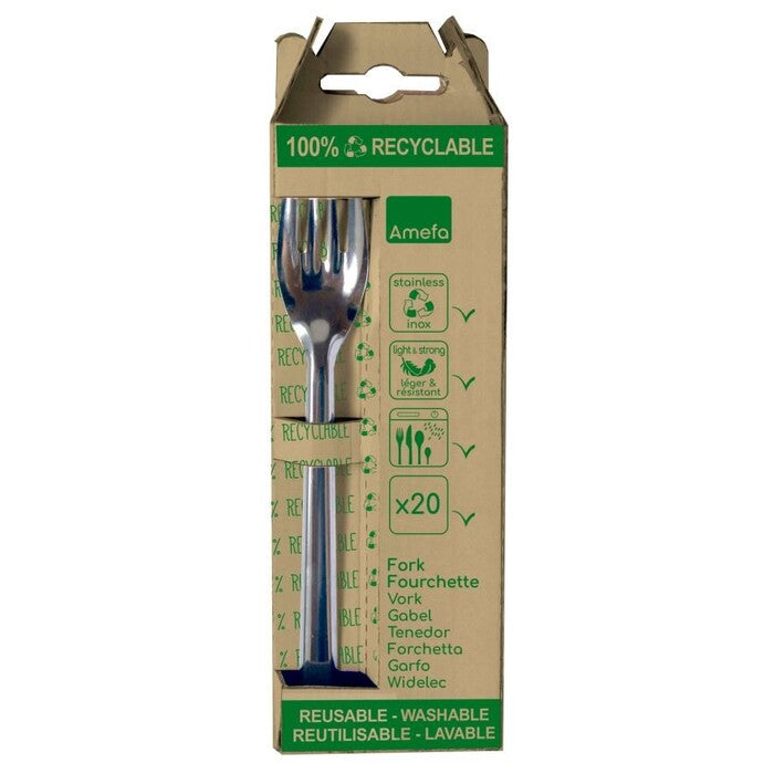 Súprava kuchynských vidličiekSúpravu vidličiek Leaves tvorí 20 kusov, preto sa tento set bude výborne hodiť do hotelových kuchýň a jedální, kde je treba mať vždy veľkú zásobu príborov. Svoje miesto si však taktiež nájde u majiteľov penziónov, reštaurácií alebo u veľkých rodín pri rôznych oslavách a párty. Vidličky sú vyrobené z nerezu, takže sa môžete spoľahnúť na ich dlhú životnosť. |