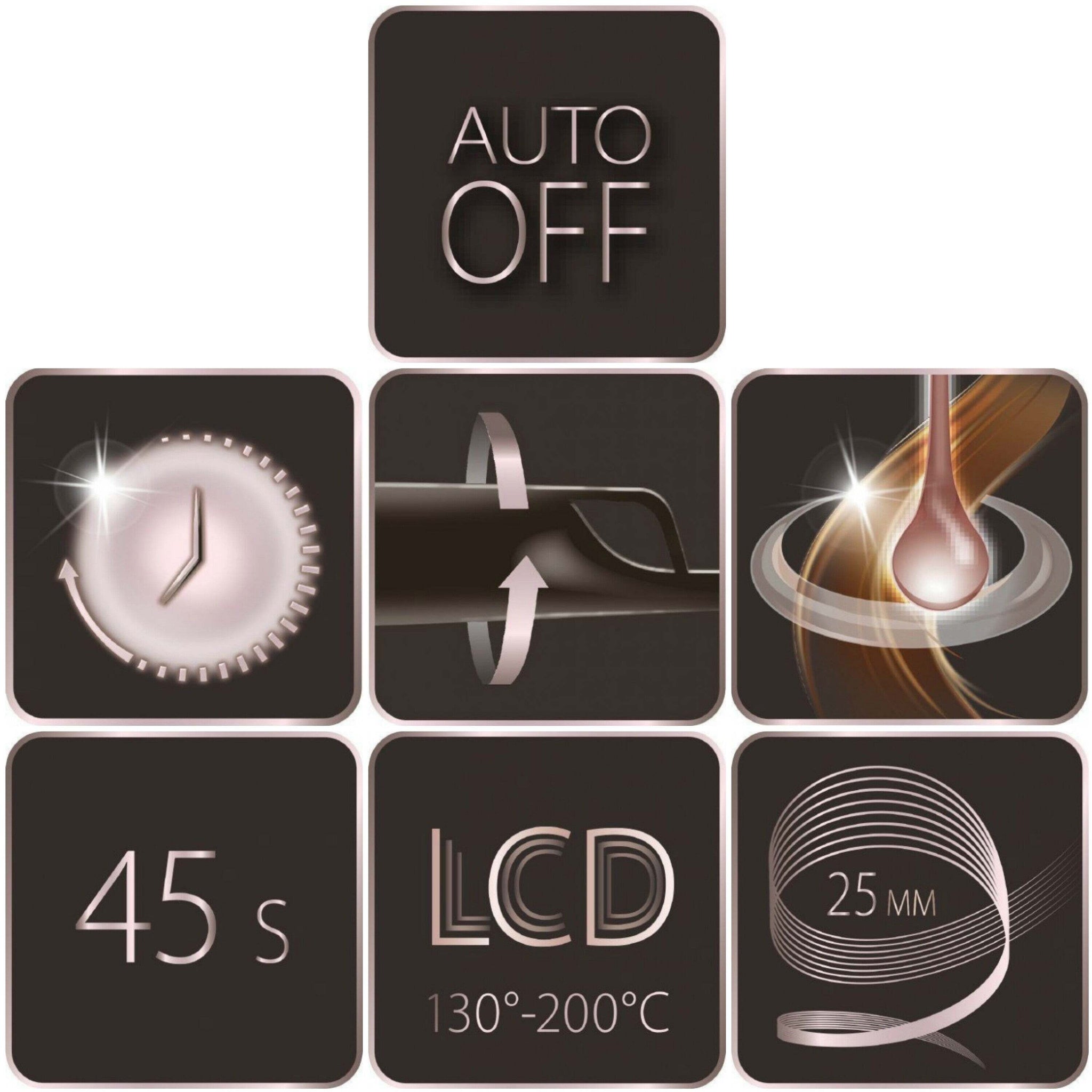 LCD displejNa rukoväti kulmy je integrovaný LCD displej, na ktorom môžete nastaviť až 8 teplôt(od 130 do 200 °C). Umožňuje tak individuálne nastavenie podľa typu vašich vlasov (jemné, normálne alebo silné) a požadovaných výsledkov. Kulma na vlasy ponúka veľmi rýchle zahriatie, už za 45 s je pripravená na natáčanie vlasov. Šnúra je o 360 ° otočná, je tak zaistená maximálna flexibilita. |