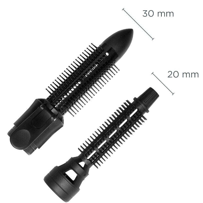 Vymeniteľné nástavceKulmofén je vybavený dvoma kefami s priemerom 20 a 30 mm, takže si hravo poradí s úpravou krátkych a dlhých vlasov. Vy si tak len vyberiete správnu veľkosť a pomocou systému CLICK-IN nástavec jednoducho pripevníte. Veľkou kefou docielite maximálny objem. Je vybavený keramickým povrchom, ktorý sa rýchlo zahrieva a rovnomerne rozkladá teplo po celej ploche. Počas práce určite oceníte aj zaťahovacie tŕne, vďaka ktorým sa vám vlasy nebudú do kefy zamotávať. |