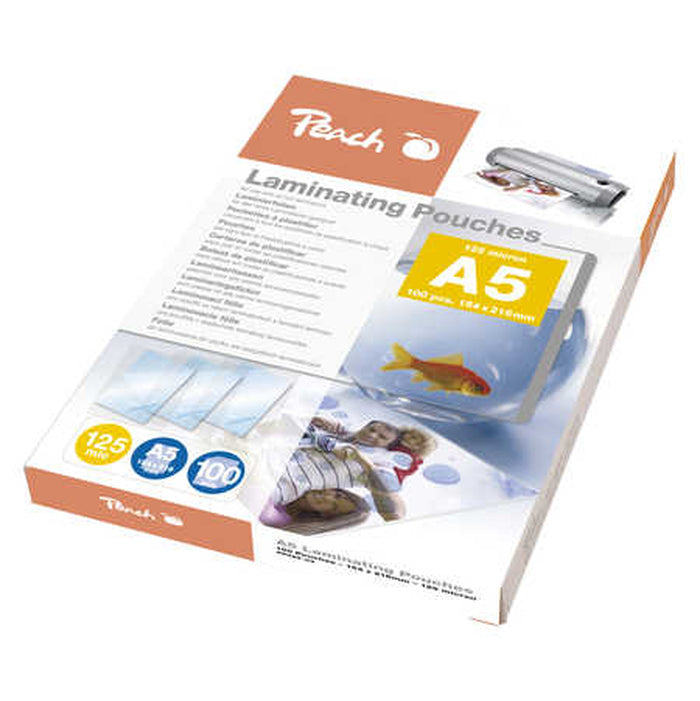 Lesklé laminovacie fólie Peach PP525-03 sa ideálne hodia pre laminovanie vašich fotografií, dokumentov či pracovných dokumentov. Balenie so 100 kusmi so šírkou 2x 125 µm je kompatibilné so všetkými modelmi laminátorov, ktoré podporujú danú silu fólie. Maximálny rozmer dokumentu použitého na laminátovanie je A5, avšak nemusíte sa obávať použiť aj menšie vstupné rozmery.