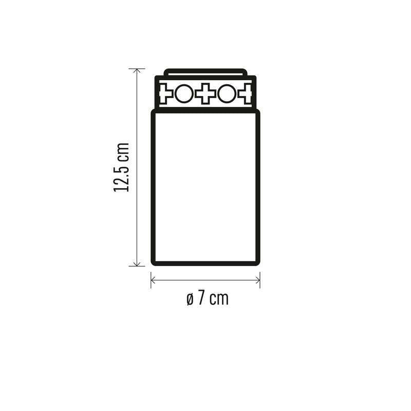 Hrobová sviečkaPrevedenie sviečky je decentné a totožné s klasickými sviečkami, zároveň je však vodeodolná s dlhou životnosťou. Je možné ju umiestniť do lampy, prípadne priamo von na náhrobok či pomník. LED sviečka funguje na dve batérie typu C. Pri použití vysoko účinných batérií vydrží svietiť dlhú dobu a navyše poskytuje bezpečný zdroj svetla bez rizika požiaru. |