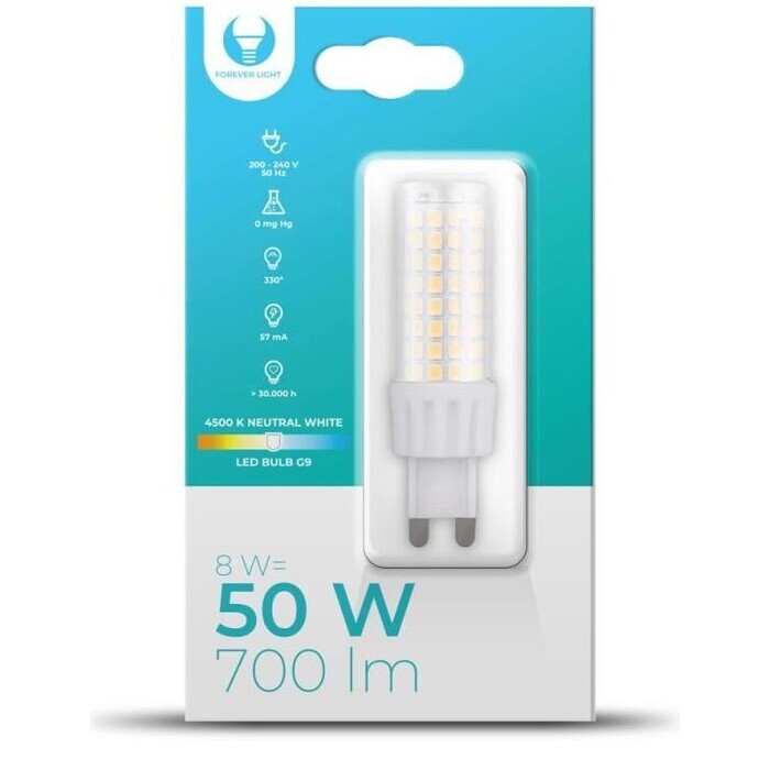 Príjemné svetlo sLED žiarovkou ForeverS farebnou teplotou 4500 K a svetelným tokom 700 lm ožiari táto LED váš priestor príjemnou svetlou bielou farbou s neutrálnym tónom. Príkon 8 W je adekvátnou náhradou za 50 W žiarovku a navyše skvele padne do pätice G9. Životnosť až 25 000 hodín zaručuje, že sa na ňu budete môcť spoľahnúť veľmi dlhú dobu. |