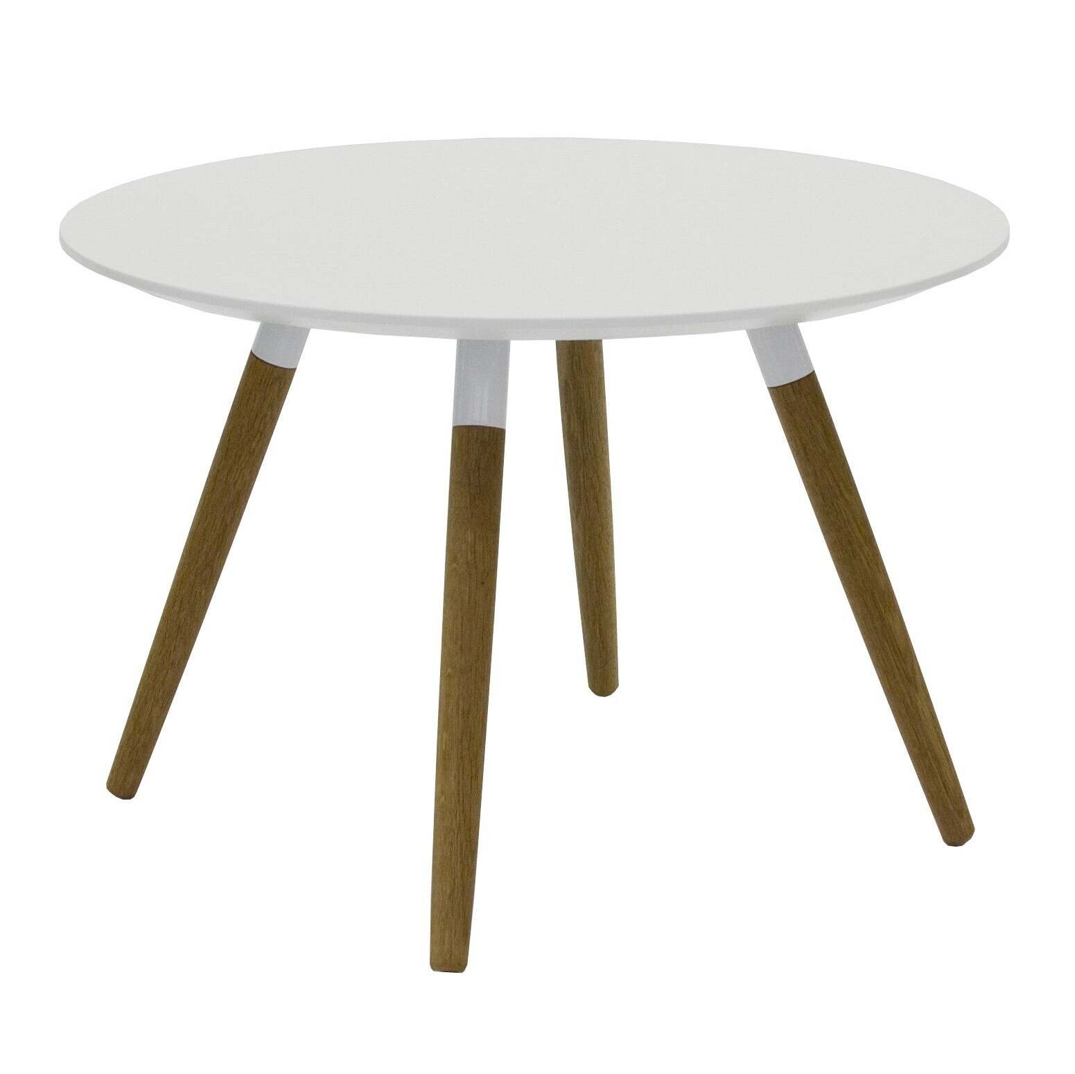 Okrúhly konferenčný stolík je vyhotovený v svetlom drevenom dekore duba v kombinácii s bielou doskou. Vzhľadom k svojim rozmerom je vhodný aj do menších obývacích izieb, ktoré sú zariadené v modernom štýle.