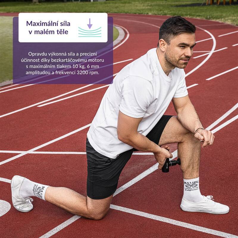 Veľa sily v malomAj keď je pištoľ malá a ľahká, má prítlak celých 10 kg a frekvenciu 3200 kmitov za minútu. Poradí si teda aj so silne stuhnutými svalmi. Pritom je veľmi tichá, takže masážou nebudete rušiť ani v práci. Zvoliť si môžete hneď z piatich intenzít a batéria vydrží 5 hodín používania, takže bude pištoľ skvelým spoločníkom napríklad na športové sústredenia alebo víkendové preteky. |