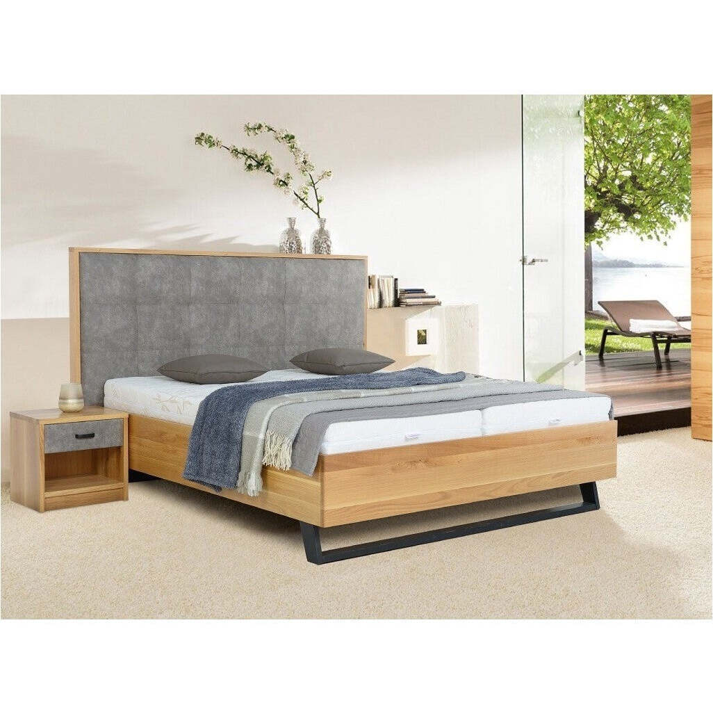 Manželská posteľ z masívu LeonLuxusná manželská posteľ Leon je tou pravou voľbou pre všetkých náročných zákazníkov, ktorí vyžadujú pohodlie, prvotriedne materiály, moderný a napriek tomu nadčasový dizajn. Táto posteľ vás na prvý pohľad zaujme čalúneným čelom s výškou 133 cm a robustným rámom z dubového masívu.V prípade, že sa budete chcieť oprieť napríklad pri sledovaní televízie alebo čítaní, vám zadné čelo postele poskytne poriadnu oporu. Elegantným prvkom je aj vysoká pevná kovová noha. Pod posteľ sa zmestí väčšina robotických vysávačov.Matrac vysoký 20 cmje vyrobený z HR studenej peny a PUR peny, vystužený vrstvou z kokosového vlákna a je položené na roštoch s pneumatickými vzperami. Rozmery plochy na spanie 180x200 cm vám poskytnú dostatok miesta pre vašu chvíľku odpočinku. Pre svoj spánok môžete zvoliť buď stredne tvrdú, alebo tvrdšiu stranu matraca.Poťah matraca s prímesou bambusu je snímateľný a prateľný. Okrem iného nájdete pod roštami postele objemný úložný priestor, ktorý je nedoceniteľný pre uschovanie lôžkovín či nepotrebných vecí. K posteli si môžete dokúpiť nočný stolík Leon. |