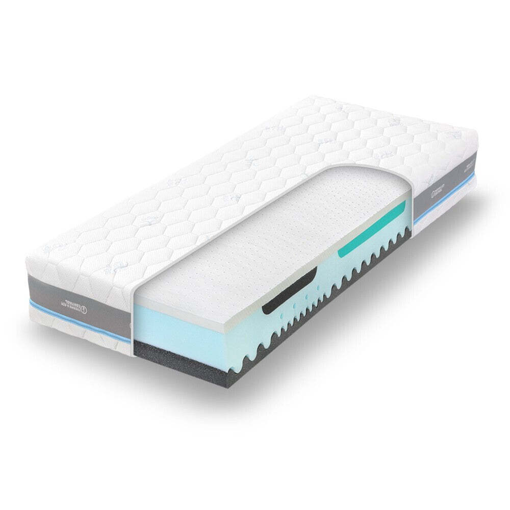 Matrac Air Latex Visco prináša prepracovaný ortopedický zónový systém, ktorý podopiera telo a uvoľňuje unavené svalstvo v každej polohe po celú noc. Ide o klinicky testovaný matrac, ktorý okrem iného zabraňuje vzniku preležanín. Svoje uplatnenie nájde aj v bežných domácnostiach, je vhodná predovšetkým pre aktívne osoby, ktorým záleží na výborných ortopedických vlastnostiach lôžka a zdravom spánku.Matrac je rozdelený do 5 anatomických zón, ktoré sa dokonale prispôsobia vášmu telu.