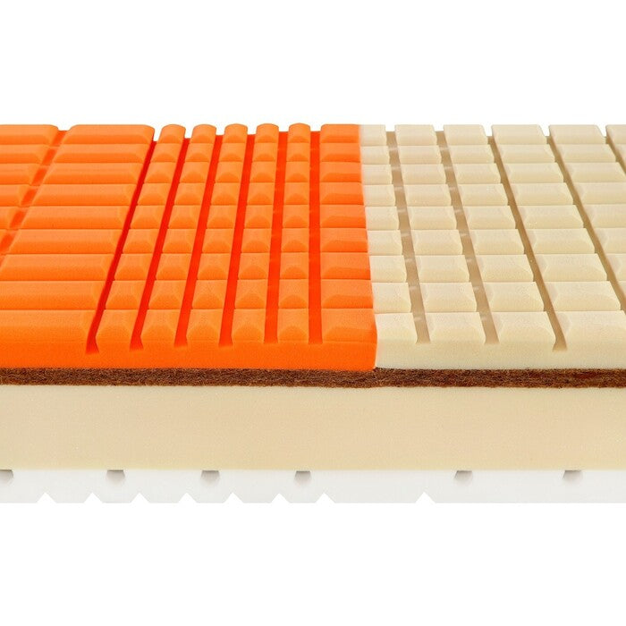 Kvalitný penový matracJadro 24 cm matraca Morfeus tvorí Flexifoam® pena, rozdelená do 7 anatomických zón. Táto pena je typická vysokou elasticitou, tvarovou stálosťou a dlhou životnosťou. Kokosová vrstva zvyšuje tuhosť a priedušnosť. Prúdenie vzduchu eliminuje potenie, tým sa vám bude dostávať po dobu spánku optimálnej teploty. |