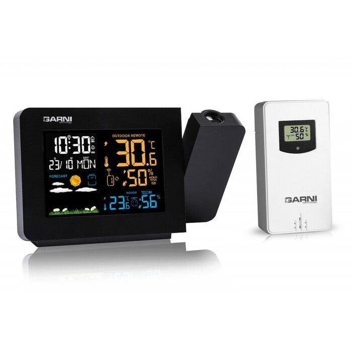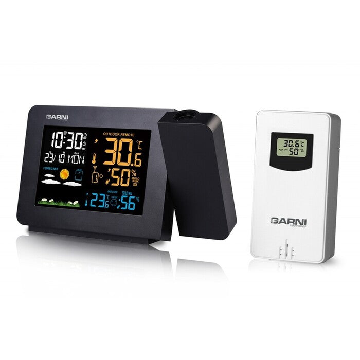 Projekca času a teplotyVďaka meteostanici Garni GARNI 439 Line budete vždy vedieť, aké je vonku počasie. Meteostanica meria vonkajšiu teplotu, vnútornú teplotu, vonkajšiu vlhkosť aj tlak. Meteostanica premieta čas a vnútornú/vonkajšiu teplotu s možnosťou otočenia obrazu o 180°, možnosť sklopenia tubusu projektora o 90° dopredu a dozadu. |
