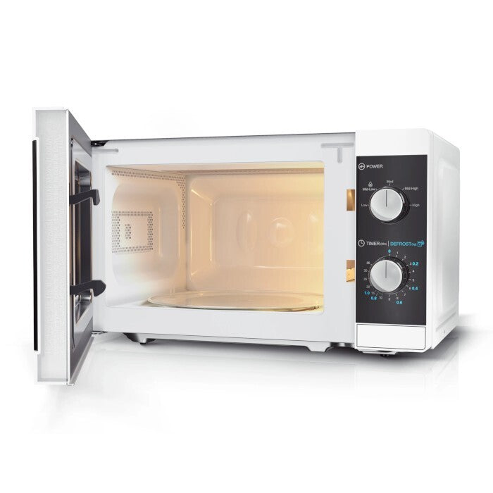 Jednoduchá obsluhaMikrovlnná rúra má na ovládanie k dispozícii dva mechanické ovládacie gombíky, pomocou ktorých si môžete zvoliť rôzne výkony a časy pre úplnú kontrolu nad vašim varením. Rúra s objemom 20 litrov s výkonom 800W ponúka 5 rôznych úrovní výkonu varenia. Súčasťou rúry je sklenený otočný tanier s priemerom 25,5 cm, ktorý umožní jednoduchšiu a bezpečnejšiu manipuláciu s pokrmami. |