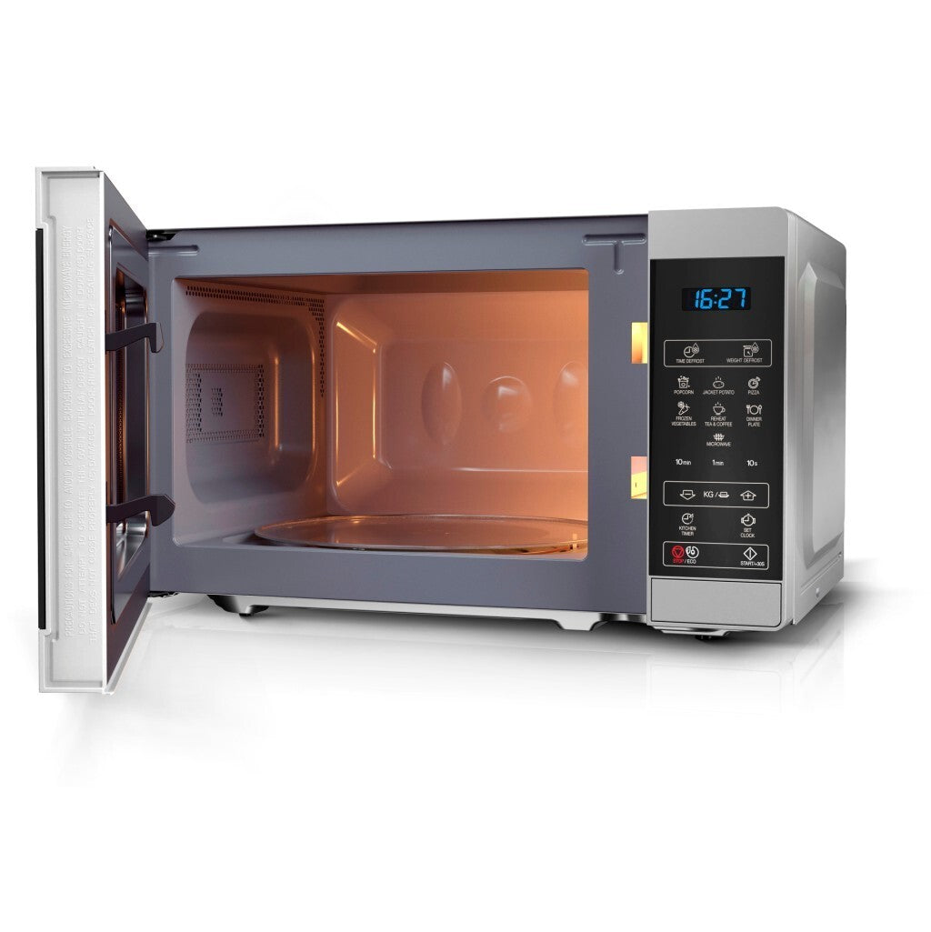 Výkonná a napriek tomu kompaktná mikrovlnná rúra značky Sharp vám nielen rýchlo ohreje jedlo, ale aj pohodlne rozmrazí zmrazené jedlo. Vysoký výkon až 900 W pre ohrievanie a rozmrazovanie a osem automatických programov z nej skrátka robia multifunkčné zariadenie, ktoré sa dá v domácnosti len ťažko postrádať. K tomu ponúka aj pohodlné ovládanie, úsporný režim alebo detský zámok a vďaka využitým materiálom sa veľmi ľahko čistí. |