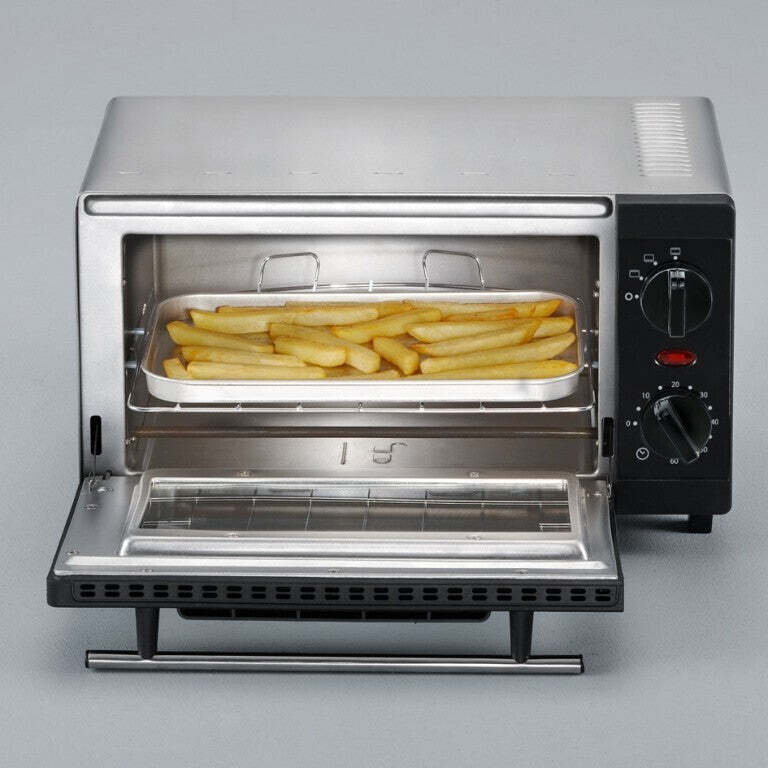 Využite časovačRúra s príkonom 800 W disponuje objemom 9 litrov, a s časovačom, ktorý možno nastaviť až na 60 minút, môžete nechať obed piecť a zvukový signál vás upozorní, až nastavený čas uplynie. Súčasťou rúry je aj praktická mriežka napríklad na grilovanie. |