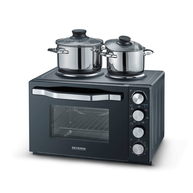 Jednoduchá obsluhaOvládanie mini rúry je intuitívne vďaka 4 otočným gombíkom, vďaka ktorým získate ľahký prístup ku všetkým funkciám, vrátane časovača alebo grilu. Dokáže sa rýchlo zahriať na zvolenú teplotu v rozmedzí 100-300 °C , takže pripravíte váš obľúbený pokrm oveľa skôr ako v klasickej rúre. Navyše ich sa môžete tešiť aj na malú a veľkú platničku s výkonmi 850 a 1500 W, čo umožňuje nielen piecť, ale aj variť klasicky v hrnci či smažiť na panvičke. |